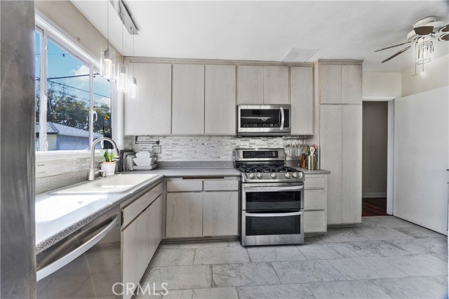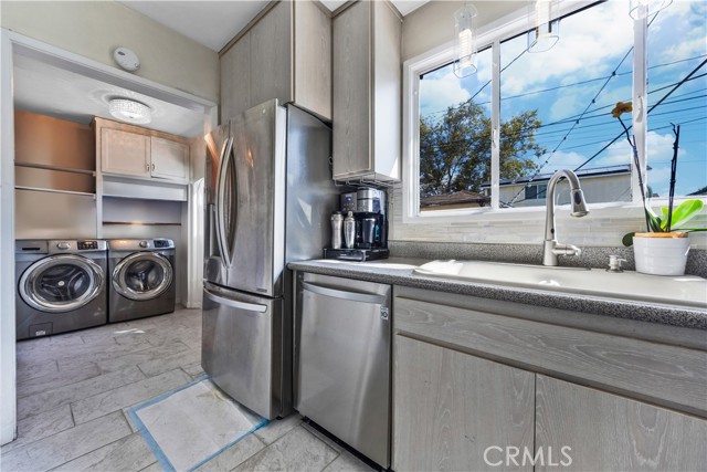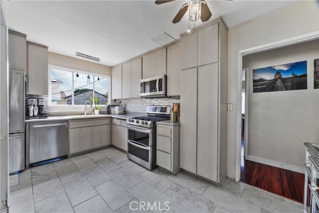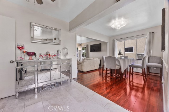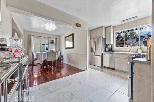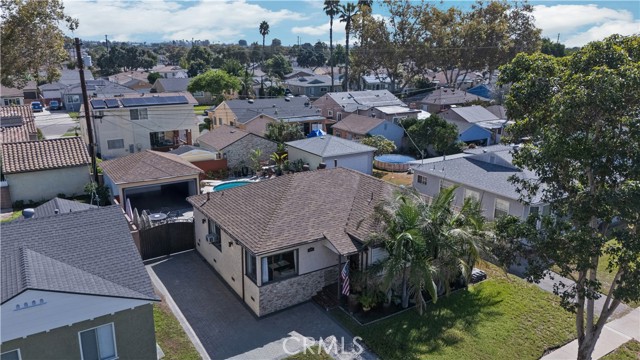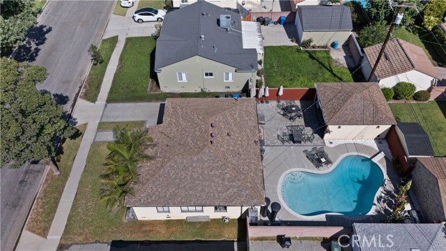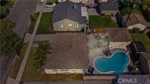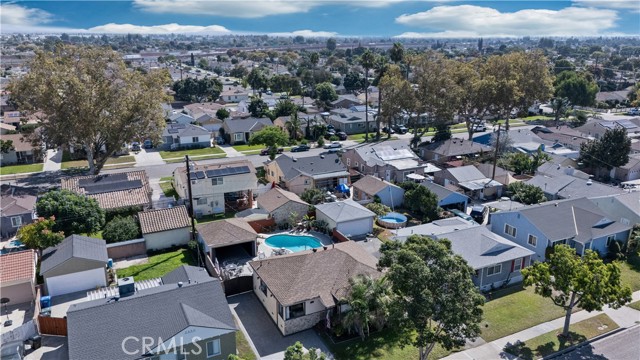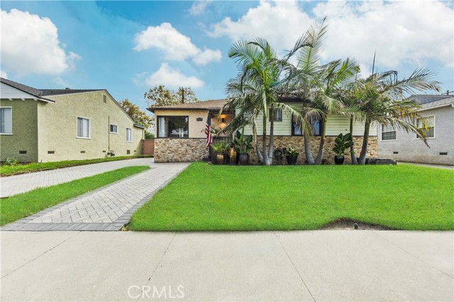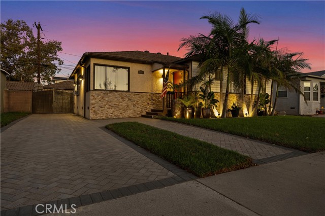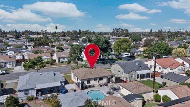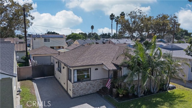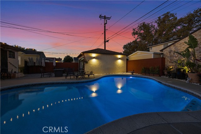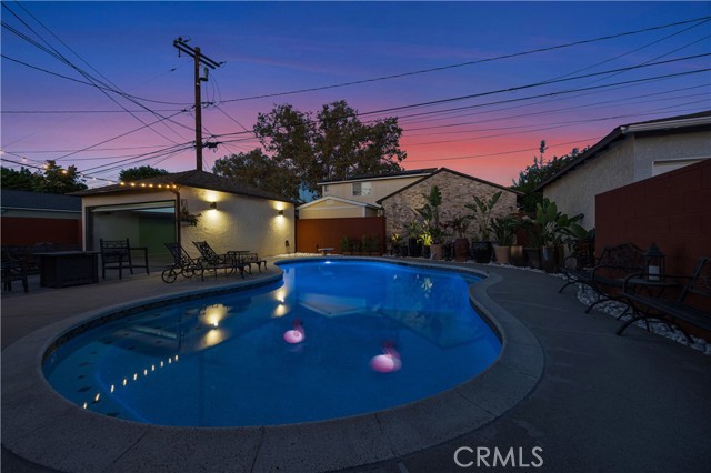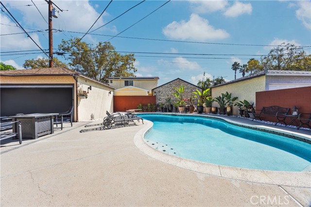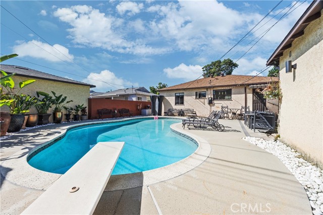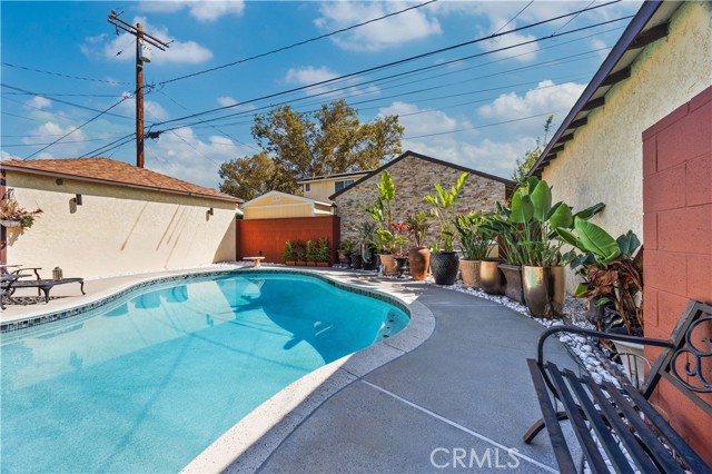 Step into this gorgeous resort-like pool home in one of the quiet cul-de-sacs of Downey, that is perfect for relaxing and entertaining. From the moment you arrive you will be welcomed by a trio of palm trees and newly installed cement pavers in the walkway/driveway/ backyard, and travertine stone walls that frame the house both front and back. Inside, the home offers a comfortable layout of 3 bedrooms which can be closed off from rest of home in case the baby is asleep or your sleeptime varies from other family members. Romantic chandeliers, ceiling fans, and plenty of natural light create a warm and inviting atmosphere. The restrooms have been updated with carrera marble tile walls, vanity and flooring giving the home an elevated spa-like feel. The suite of kitchen appliances all match. The backyard is truly a retreat, featuring a sparkling heated pool, new modern tiles and pebble-tech flooring. On one side you can calmly lounge with friends and do aqua-yoga or play volleyball and on the other you can show off your skills and tricks as you jump into the prestine water from atop the diving board and into this 9 ft deep refreshing attraction. Whether it's barbeques, pool parties or simply enjoying a quiet evening outdoor poolside under the stars by a gas-lit fire, this backyard has it all. Nestled in North Downey, near Wilderness Park, Costco, Smart & Final, Target, Honda World and quick access to the 5 and 605 fwy, this home blends charm, luxury and convenience into one. Don't miss a chance to make this gem of a property your own.