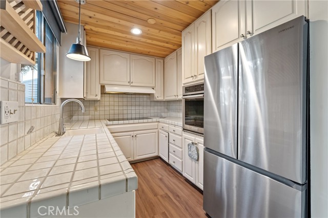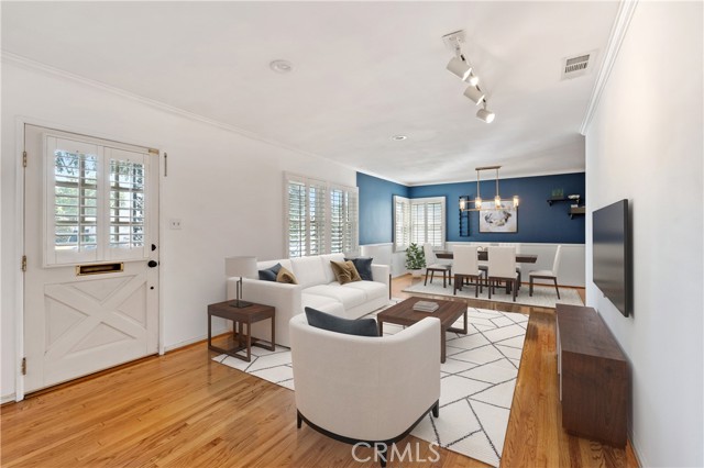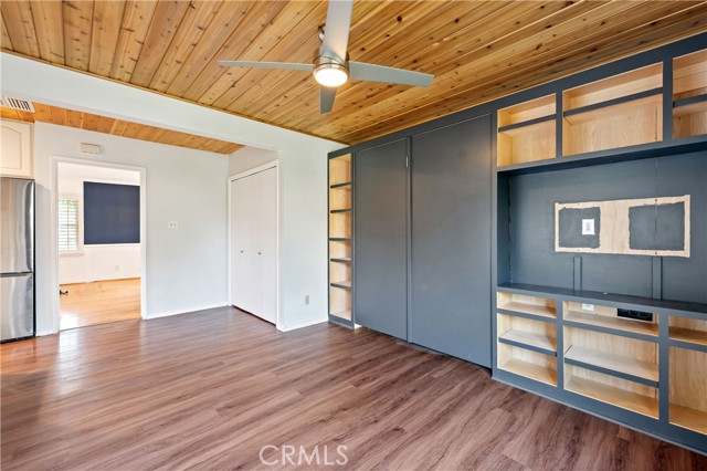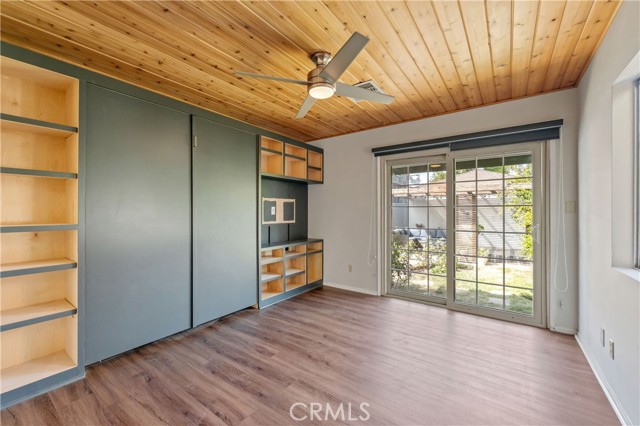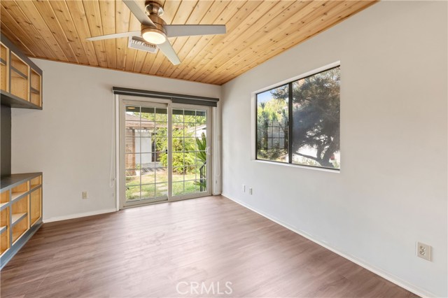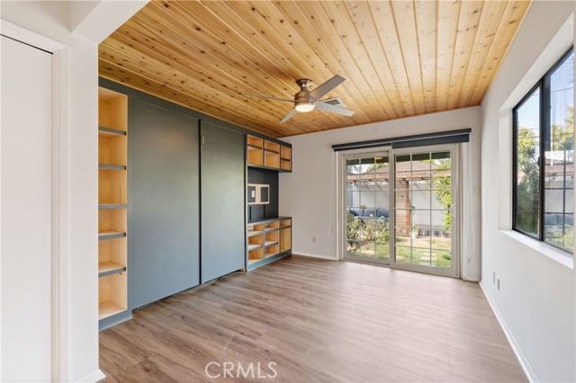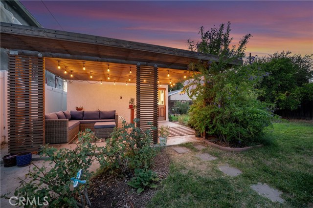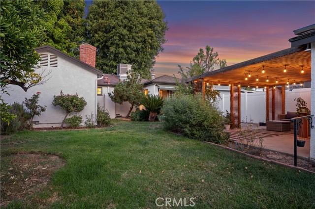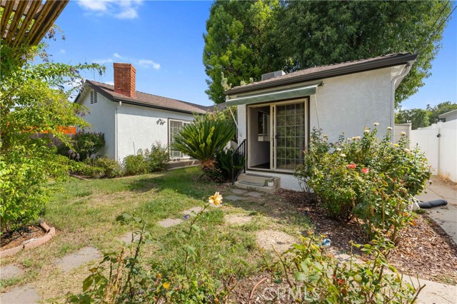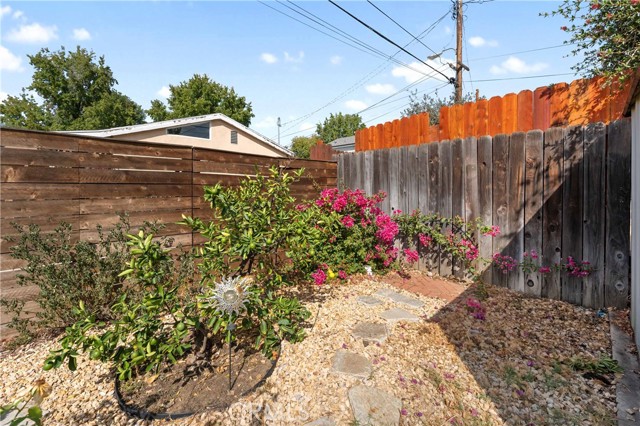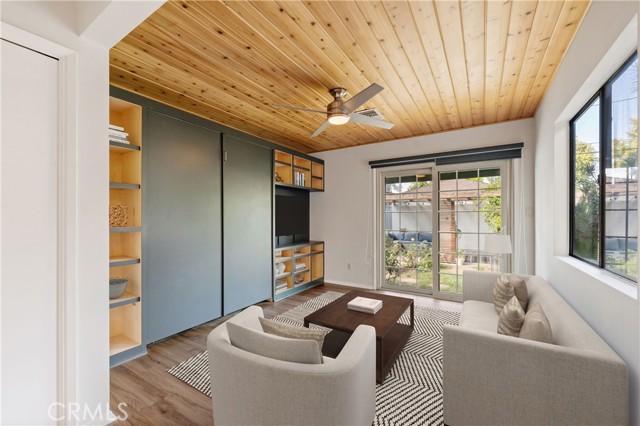 Adjacent to Lake Balboa, is this wonderfully updated 3 bedroom, 1 bath home with a den, a lovely yard and a 2-car detached garage. Possible Accessible Dwelling Unit Opportunity. In addition, it has lovely curb appeal and 2 beautiful Ash trees that provide loads of shade. Central air & forced air heating!! Nest thermostat. Mostly dual pane windows throughout and most of the windows have plantation shutters! Newly painted interior. Mostly copper plumbing! 2 bedrooms and the bathroom have new modern-style doors. Upgraded kitchen, which opens to the den, has tile counter tops, a modern custom cedar plank ceiling, luxury vinyl flooring, new kitchen sink faucet and new water feed lines. Kitchen appliances installed in 2022, include a dishwasher, induction electric cooktop, convection oven & refrigerator. The kitchen closet has a pantry with a stackable washer/dryer, which are included. The den, which is open to the kitchen, has a ceiling fan, luxury vinyl flooring, custom modern cedar plank ceiling, custom built-in shelving and a dual pane glass slider out to the lovely yard. The inviting back yard has lush landscaping, fruit trees, a storage shed & a large custom-built covered patio, which is great for dining Al Fresco. The upgraded full bath has a new vanity, w/new fixtures, upgraded lighting, a tiled tub/shower combo and a tile floor. Both secondary bedrooms with double door closets and plantations shutters. Home network CAT 5 to most rooms. Hardwood floors in the living room, dining area, 1 bedroom and the hallway to the bedrooms. In addition, the living room and dining area have crown molding. The dining area has a built-in wine rack, shelving and an eye-catching light fixture. Back bedroom with crown molding, double door closet, a single door closet, wood paneling, ceiling fan, plantation shutters and a dual pane slider out to the back yard. Front and middle bedrooms both have double door closets and windows with plantation shutters. Automatic sprinklers in both the front and back yards. Additional upgrades: Replaced electrical panel in 2022 & a 100 watt subpanel installed in the garage. The detached garage also has a full length custom workbench, a center custom work station, a French-cleat modular organization system & a mini-fridge. A new sewer cleanout was installed in 2023. Walking distance to Jesse Owens Park. Reseda Park & Recreation Center offers many activities including pickleball courts coming soon.
