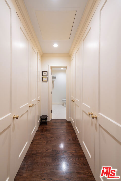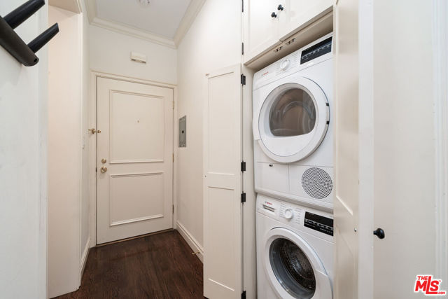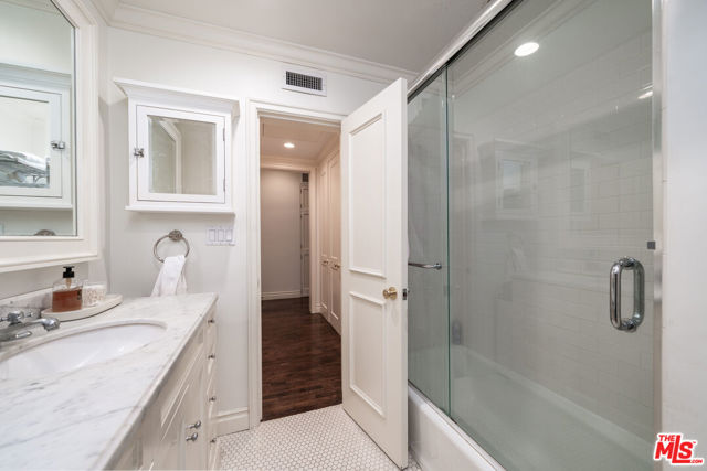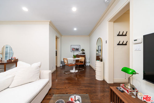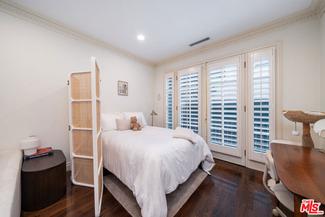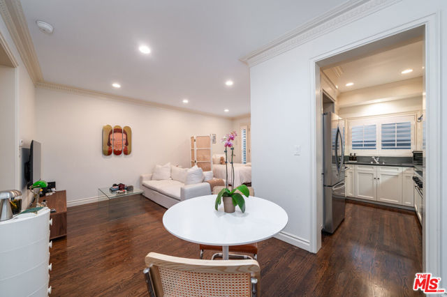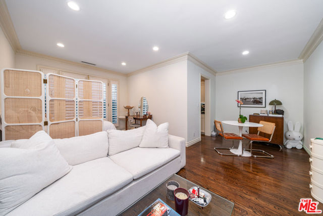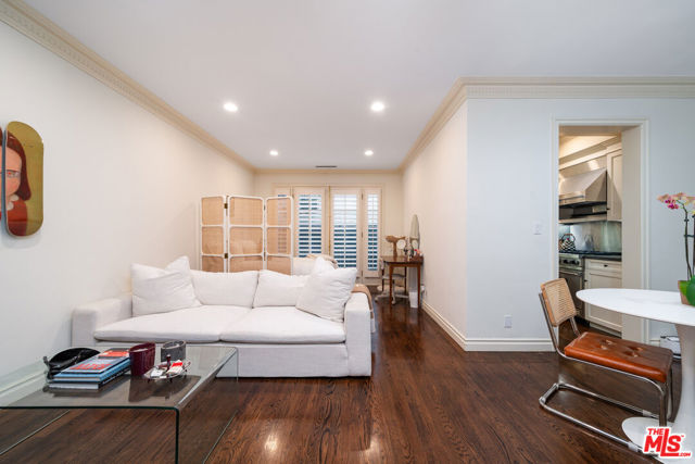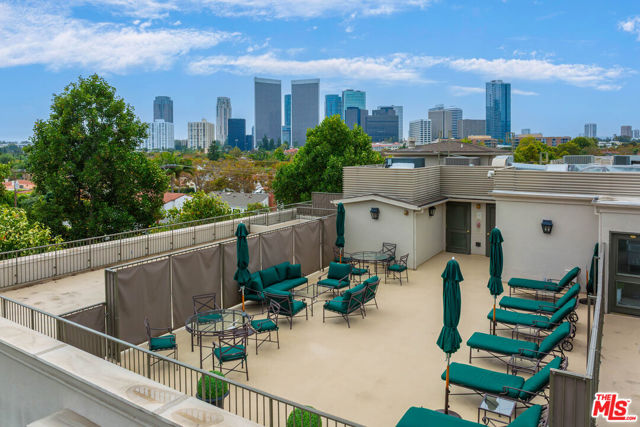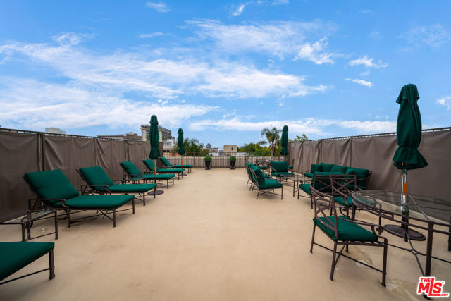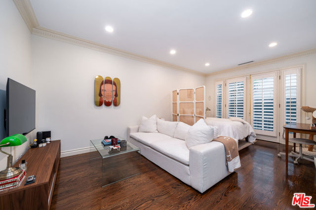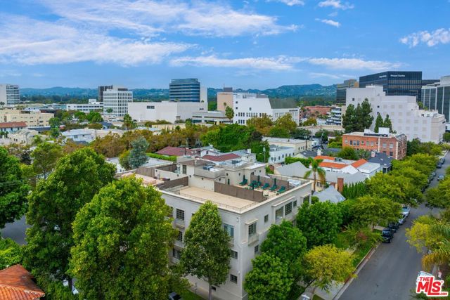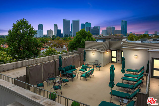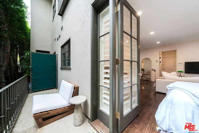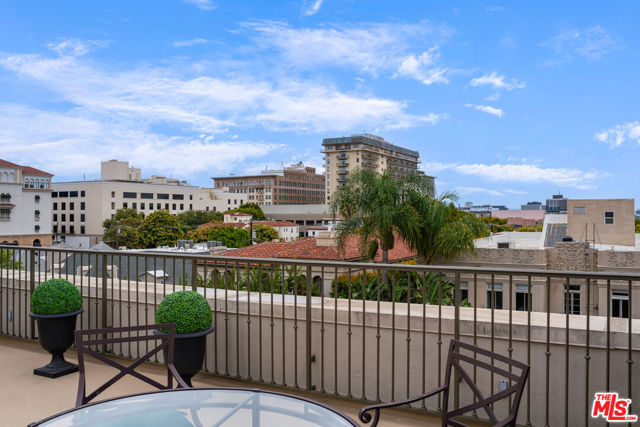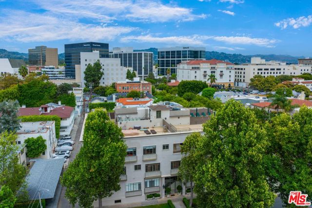 Manhattan-Style Pied--Terre sophisticated and upscale, this remodeled residence is located just steps from world-class shopping and dining, moments from Saks Fifth Avenue, the Beverly Wilshire Hotel, and Rodeo Drive. Designed to perfection by acclaimed interior designer Waldo Fernandez and architect Peter Choate, the stylish condo features a gourmet galley kitchen with a Viking six-burner stove, bluestone marble countertops, stainless steel appliances, and rich solid oak hardwood floors. High ceilings with crown molding, a luxurious marble bath, and French doors with custom plantation shutters create an elegant, inviting atmosphere. Additional highlights include a private terrace, Bosch washer/dryer, central heat & air, and two tandem parking spaces with locked storage in a secure gated garage. The building offers a rooftop deck with sweeping Century City and Beverly Hills views, concierge-level security with cameras, and elevator access. The tenant is currently occupied until the end of 2026, as per the lease agreement.