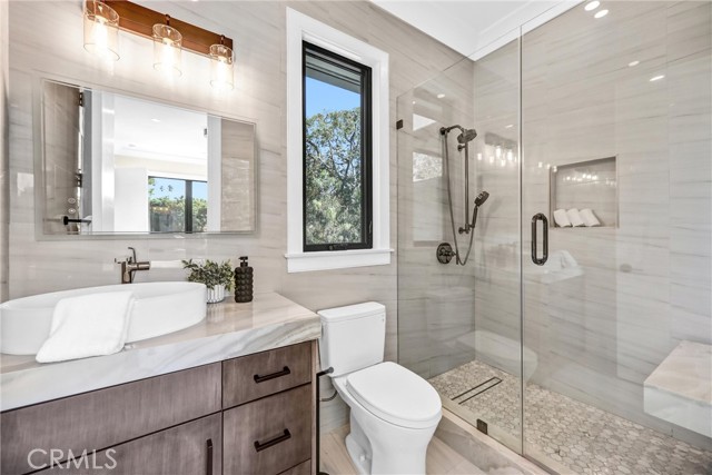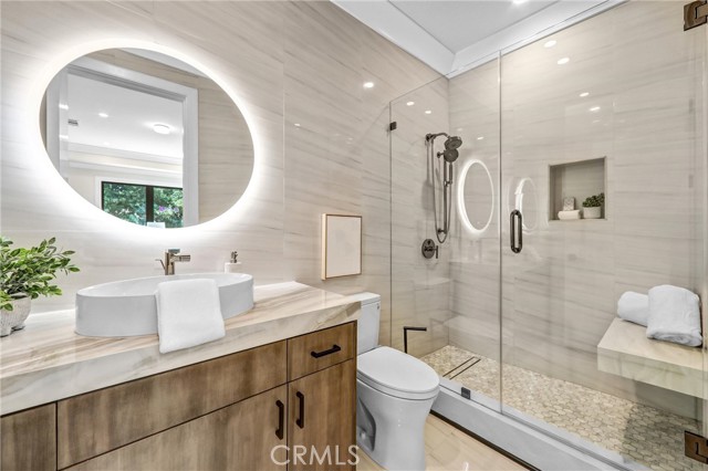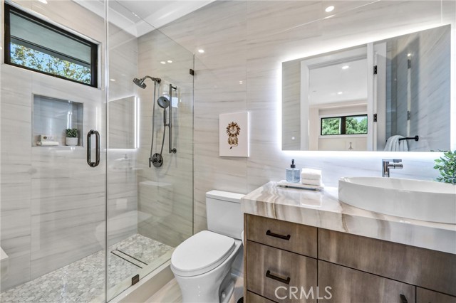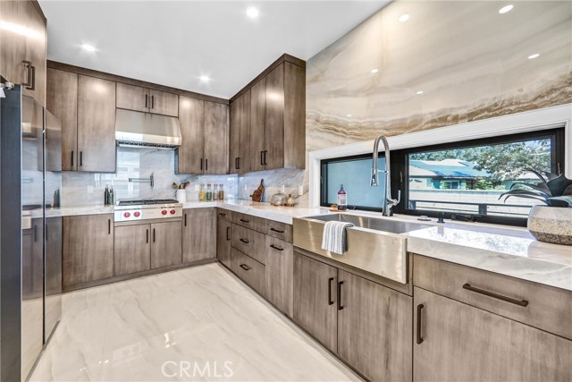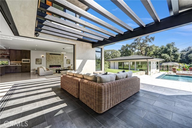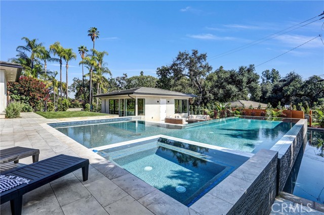 Half an acre of perfection! This completely reimagined property includes a NEW CONSTRUCTION contemporary masterpiece, drought-friendly landscaping, PAID OFF solar roof panels (nearly NET ZERO!), a backyard oasis and a bonus ADU/pool house. No expense spared! Step inside through the stunning pivot front door and you’ll find wide-plank hardwood floors, dramatic double staircases and soaring ceilings. Every room here includes beautiful tilework, gorgeous fixtures and custom millwork. The main level has an open layout that’s filled with natural light. The chef’s kitchen anchors the rear of the floorplan, complete with sleek European cabinetry, top-of-the-line Wolf & Sub-Zero appliances, two porcelain-topped islands and a scullery. The kitchen is open to the living room and dining room, which includes a climate-controlled wine cellar. When the weather’s right, you can open the massive glass pocket doors to truly maximize indoor/outdoor living. In that backyard oasis, you can entertain under the pergola, dine in the lanai under the built-in infrared heaters, or gather around the poolside firepit. The infinity-edge spa & pool has to be seen in person! The ADU/poolhouse includes a kitchen, bedroom & bathroom – with all the same high-end materials found in the main house. Back in the main house, there are two master suites – one upstairs and one downstairs. Both spa-like ensuites are simply stunning, offering porcelain slab walls, his&her vanities, a free-standing soaking tub and a gorgeous frameless glass shower. Each of the guest bedrooms also includes a private ensuite. Still need more space? Head down to the lower level, where you’ll find a large game/rec room, a gym/home office, a home theater, a guest room and a bathroom. Even the basement has private outdoor space! Don’t forget about the 4-bay garage and the solar roof panels on Net Meter 2.0 – which nearly eliminates all your utility bills! Nestled in the foothills of the San Gabriel Mountains, this neighborhood puts you close to everything – hiking trails, the 210 Fwy, Pasadena, Santa Anita, the Arboretum and more. The area is zoned to the award-winning Arcadia school district, and you’ll be just minutes from all the shopping & dining along historic Rt 66.