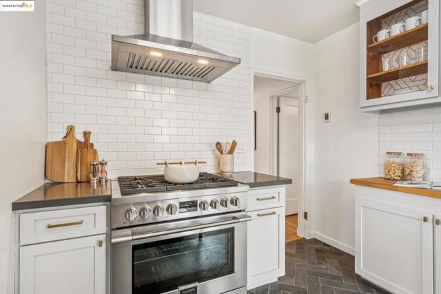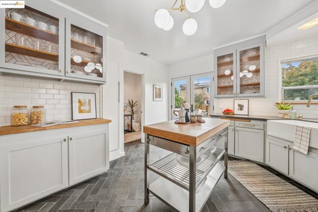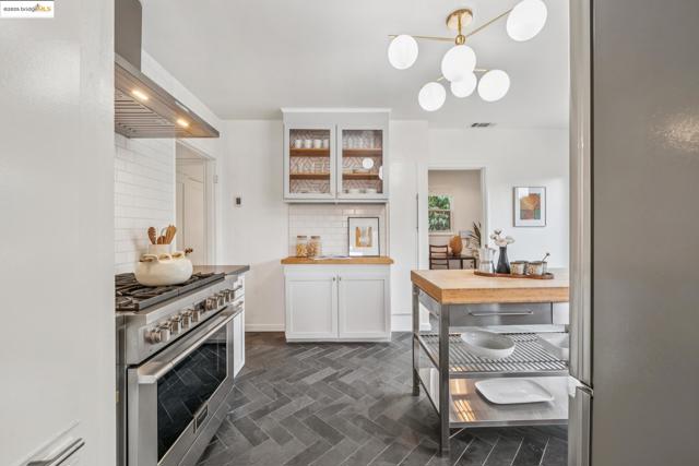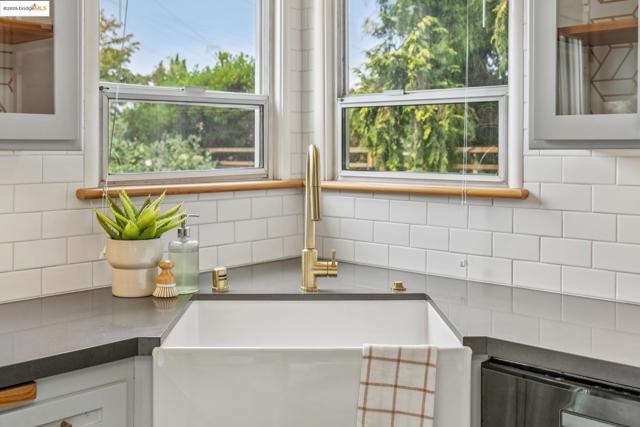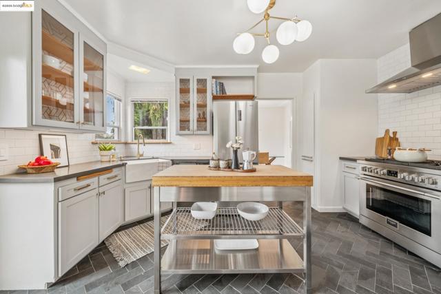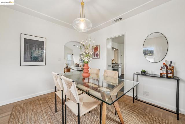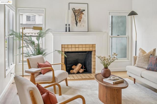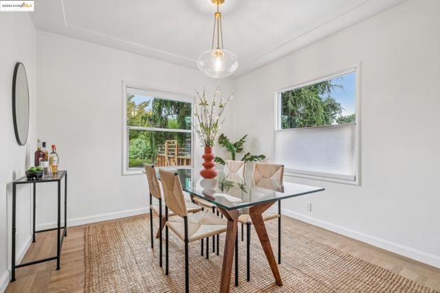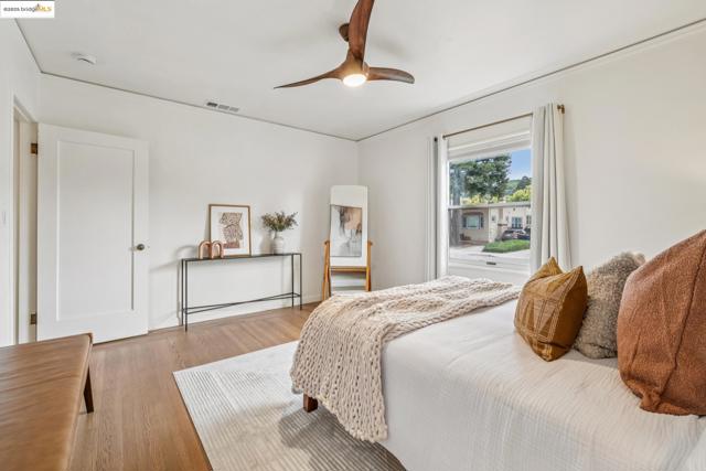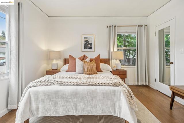 Sitting on a large corner lot in San Leandro’s beloved Broadmoor neighborhood, 999 Alice Ave is a 1938 bungalow that beautifully blends timeless charm with smart upgrades and incredible outdoor living. The striking exterior features a bold modern color palette, brick chimney accents, and an inviting arched front door. Inside, restored white oak floors and a soaring 10-foot barreled ceiling bring warmth and character, while updates like dual-pane windows, upgraded electrical, and a new HVAC system with central A/C make life easy. The remodeled kitchen offers radiant heated floors and French doors that open to a spacious redwood deck. The backyard is designed for entertaining with a grassy lawn, sleek paver patio, and mature grapefruit, orange, and fig trees, all framed by tall redwood fencing for added privacy. The detached garage provides a Tesla EV charger and the flexibility to convert into a workspace, while a side shed and newly built concrete pad allow for even more storage potential. The home is perfect as is, yet the expansive front yard offers opportunity for future fencing, expanded outdoor living, or even possible home expansion. With Koolfi Creamery, Top Hatters, 580, and BART all nearby, this home is move-in ready with room to grow.