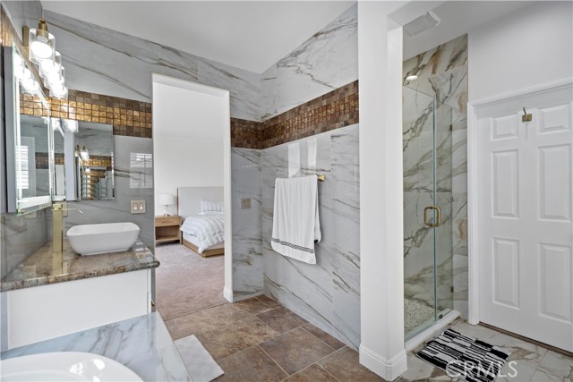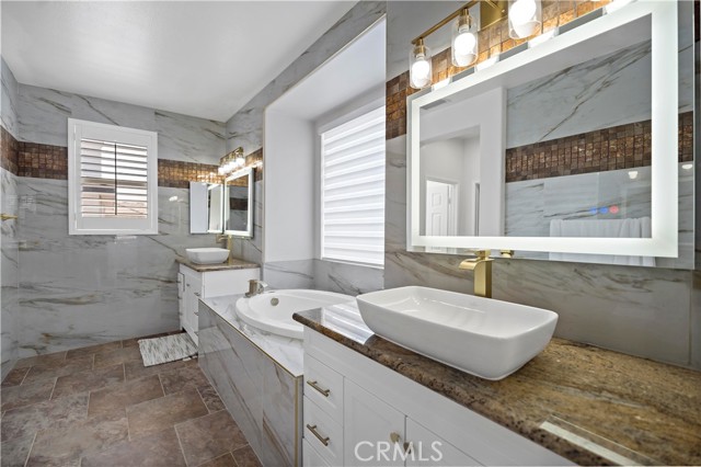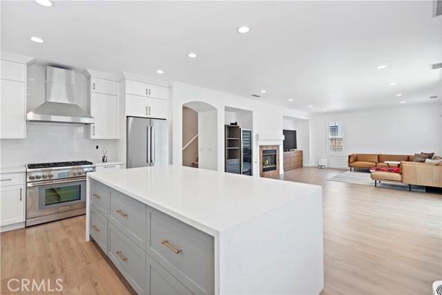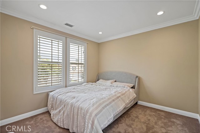 Beautifully upgraded 4 bed, 3 bath home located in the desirable Jolimont community of Rancho Cucamonga. This spacious and airy two-story home features fresh interior paint, recessed lighting, upgraded flooring, crown molding, and designer draperies throughout. The gourmet kitchen is equipped with new white cabinetry, granite countertops, and a Wolf high-performance range, opening to a large family room—perfect for entertaining.Downstairs includes a full bedroom and remodeled bathroom with Spanish tile and a large walk-in shower, ideal for guests or multi-generational living. Upstairs, the oversized primary suite offers a retreat space that can be used as an office, lounge, or optional 5th bedroom. The spa-like primary bathroom has been remodeled with elegant marble tile throughout. All bedrooms are spacious with ample closet space and new mirrored doors. Additional highlights include upgraded vanities, a large loft perfect for a media room or study, and a professionally landscaped yard with a newly painted pergola. Attached 2-car garage. Excellent location near 210 fwy, Victoria Gardens, dining, and shopping. Walking distance to top-rated schools, including Los Osos High. No HOA or Mello-Roos!