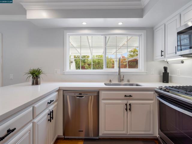 This beautifully updated Concord home blends modern upgrades with exceptional indoor–outdoor living. The refreshed kitchen shines with resurfaced cabinets, raised ceilings, new paint, sleek backsplash, recessed lighting, stainless appliances, and a custom-built pantry. The primary suite is equally impressive with a remodeled bathroom featuring a double vanity, upgraded flooring, new window, plumbing, and a more open, spa-like layout. Enjoy hardwood floors, fresh paint, recessed lighting, and a cozy family room with a gas fireplace and custom shelving. The 2-car garage is fully equipped with a sink, washer/dryer hookups, and an EV charging station. Step outside to your own private retreat! The backyard is designed for entertaining with a solar-heated pool, hot tub, and a built-in BBQ structure that includes a grill, smoker, and pizza oven—all under a shaded cover for year-round enjoyment. Recent upgrades include a new roof (2021), pool liner (2023), garage door (2023), and exterior paint (2023), ensuring peace of mind for years to come. All this in a fantastic location near Oak Grove Plaza, Citrus Marketplace, The Orchards, plus nearby hiking and biking trails.