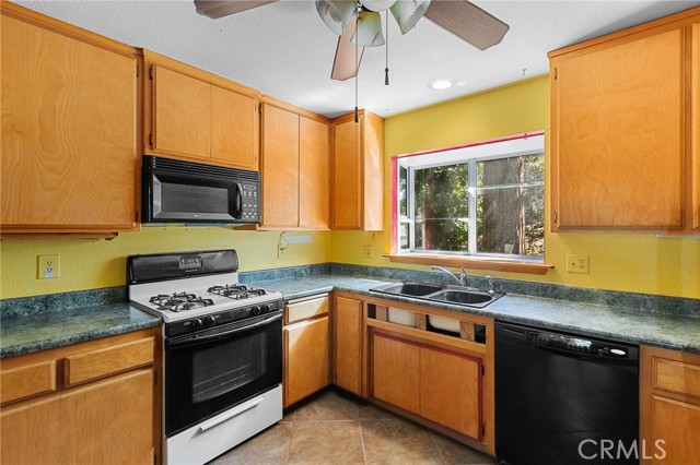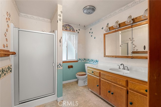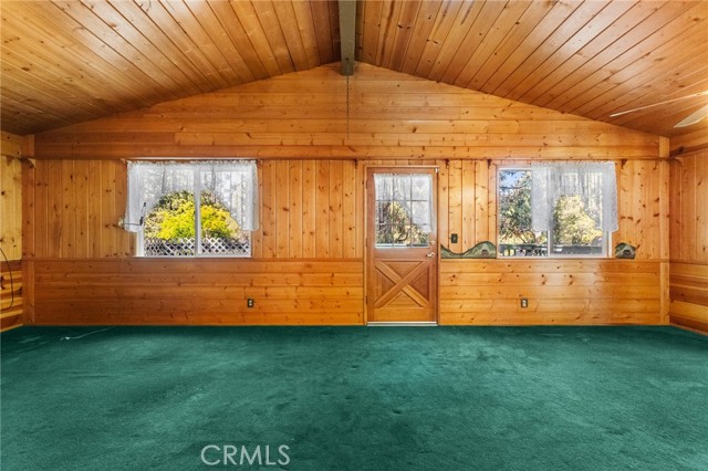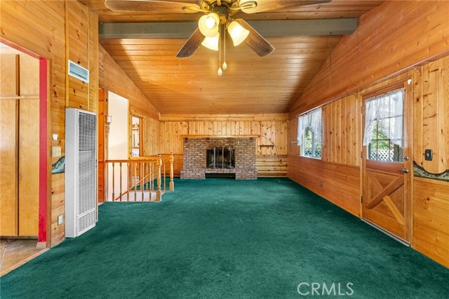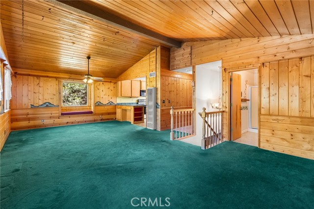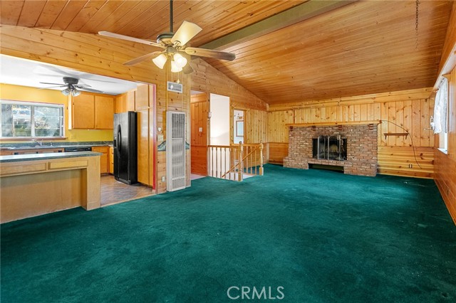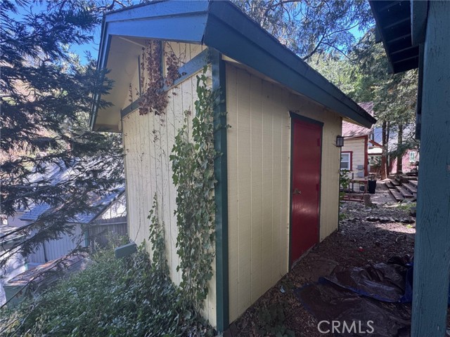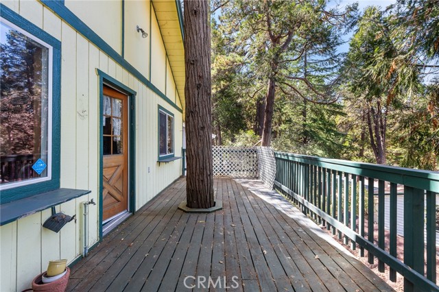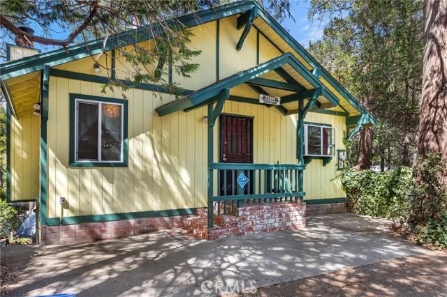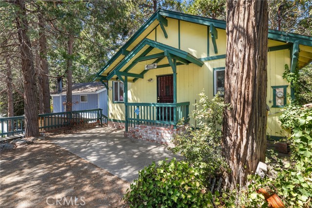 Charming 2 story mountain cabin near Lake Gregory! Vaulted knotty pine ceilings and paneling throughout upper level. Cozy and open main living area complete with brick fireplace. Spacious dining room. Kitchen features tile flooring, great counter space and cabinet storage, breakfast bar and garden window. Dual paned windows throughout. All 3 bedrooms located on lower level. Laundry with washer & dryer. Lots of storage for linens, etc. Separate entry to side stairs from 3rd bedroom. Full bathrooms upstairs and downstairs. Wood deck off of dining/living area. Workshop shed on lower level yard. Level parking and just 3 steps to front door. Conveniently located, close enough to take a stroll into town for shopping and walks around the lake. While this property needs some TLC, its classic features and layout make for a wonderful opportunity to create your vision and restore it to its full charm. Call to schedule a private tour today!