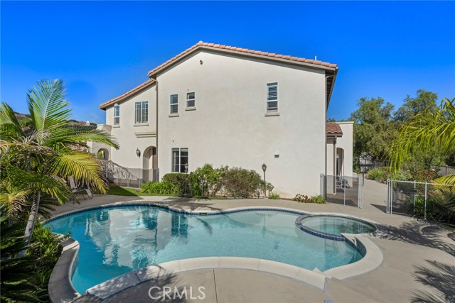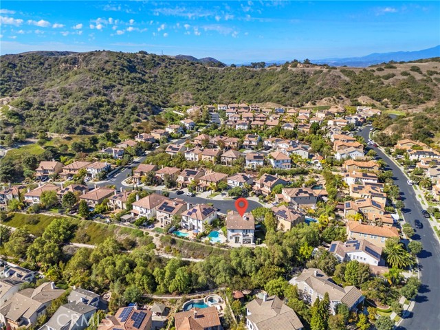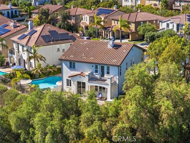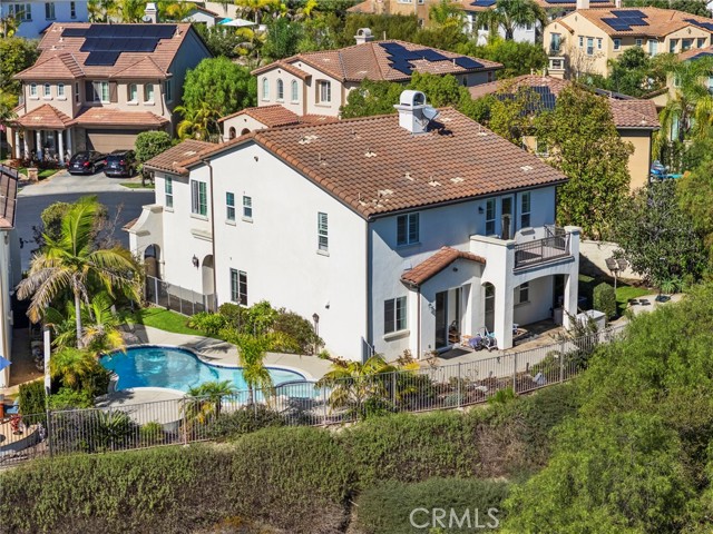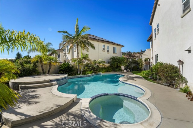 Welcome to this beautifully maintained home located on a private cul-de-sac in the desirable Talega community of San Clemente. Situated on an elevated lot with no neighbors behind, this residence offers privacy, scenic hillside views, and peek-a-boo ocean vistas. Featuring 4 bedrooms, 2.5 bathrooms, and approximately 2,627 sq. ft. of living space on a 6,714 sq. ft. lot, the home showcases an open and versatile floor plan perfect for modern living. The entry is highlighted by double French doors and a charming covered porch, leading to formal living and dining areas.The gourmet kitchen boasts quartz countertops, a stylish backsplash, center island, breakfast bar seating, walk-in pantry, and stainless steel appliances including double ovens. It opens seamlessly to the inviting family room with a cozy fireplace. The expansive backyard is designed for entertaining, complete with a pool, spa with waterfall, tropical landscaping, patio seating areas, and hillside privacy. Upstairs, a central landing with a versatile tech/loft area provides additional flexible space. To the right, the spacious primary suite offers a private balcony with serene views, dual vanities, soaking tub, separate walk-in shower, and a generous walk-in closet. To the left, three secondary bedrooms share a full bathroom and are complemented by a conveniently located laundry room. Additional upgrades include an updated garage door system, newer water heater, plantation shutters, modern lighting, and pre-wired audio/security. Residents of Talega enjoy resort-style amenities such as multiple community pools, sports courts, parks, hiking and biking trails, and proximity to top schools, shopping, dining, and San Clemente’s world-class beaches. This home combines elegant upgrades, privacy, and an ideal location—offering the very best of Southern California coastal living.