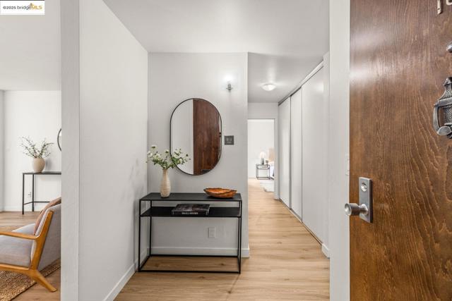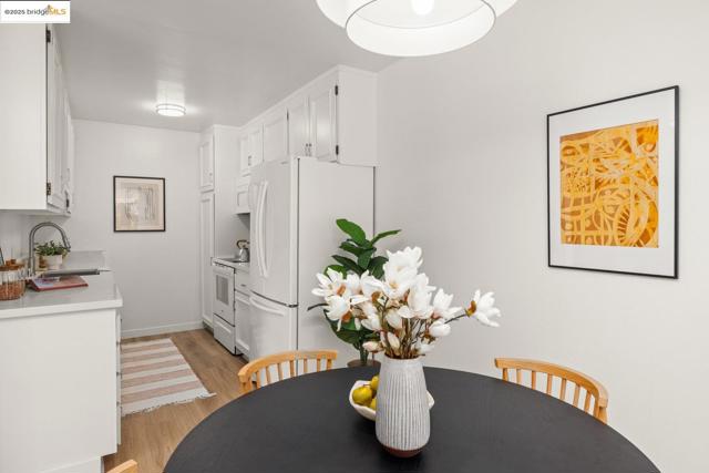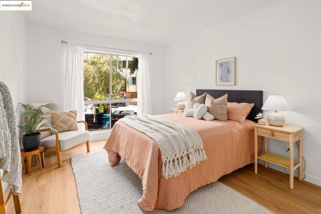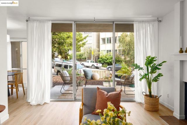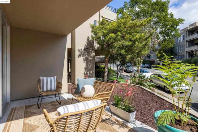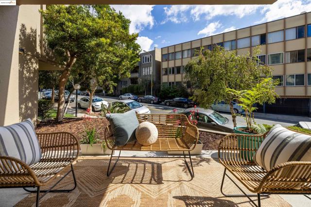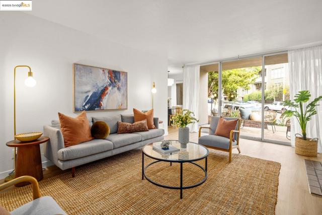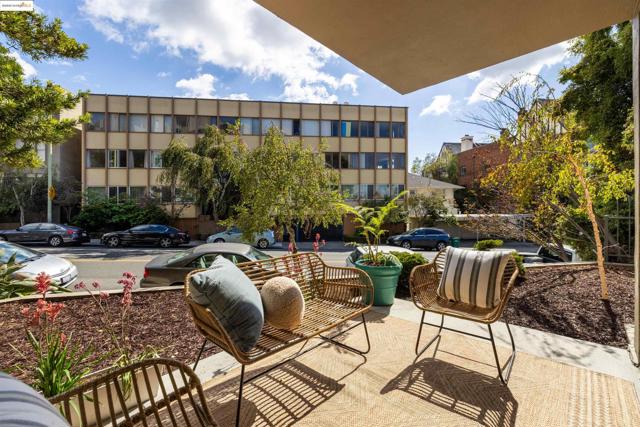 Spectacular Rockridge Condo. Beautifully refreshed and move-in ready, this stylish 2BD/2BA corner unit offers modern comfort in one of Oakland’s most sought-after neighborhoods. Featuring gorgeous new flooring, fresh interior paint, and designer finishes throughout, the home is filled with natural light from oversized windows and an inviting open floor plan. The updated kitchen includes a dining nook, abundant storage, new appliances and flows seamlessly into the living space perfect for entertaining or everyday living. The owner’s suite provides a private retreat, while the second bedroom offers flexibility for guests or a home office. An oversized patio space extends your living outdoors, ideal for relaxing or entertaining. Conveniently level-in yet perched above the street, this unit combines accessibility with privacy. One secured garage parking space is deeded to the home. Located just two blocks from College Avenue, you’ll enjoy easy access to Rockridge’s vibrant restaurants, boutiques, coffee shops, and markets. The Claremont Country Club, Rockridge BART, the TransBay bus line, and AC Transit are all nearby, making commuting a breeze. This condo is a true haven of style and convenience in the heart of Rockridge.