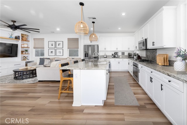 Welcome to your dream home in North Fontana! This stunning 3-bedroom, 2.5-bath home offers over 1,900 sq. ft. of spacious, open-concept living designed for today’s lifestyle. Step inside and fall in love with the gourmet kitchen featuring a huge island with bar seating—perfect for family meals and entertaining friends. The dining area flows seamlessly into the living space, creating the ideal setup for gatherings. Upstairs, discover a large loft that can be your work-from-home office, a playroom, or a cozy media space—the choice is yours! The private primary suite is a retreat in itself, with view of the mountains, a massive walk-in closet, and a spa-like bathroom complete with a soaking tub, walk-in shower, dual sinks, and plenty of counter space. Convenience is key with all bedrooms and a full-size laundry room located upstairs. Outside, enjoy a charming backyard with a concrete patio and low-maintenance landscaping—ready for weekend BBQs or quiet evenings under the stars. But the lifestyle doesn’t stop at your door—this vibrant community offers a sparkling pool, park, and basketball court for endless fun. Plus, you’ll love the quick access to the 210 and 15 freeways, making your commute a breeze. Don’t miss your chance to own this incredible home in one of North Fontana’s most desirable neighborhoods Gabion Ranch—schedule your private tour today!