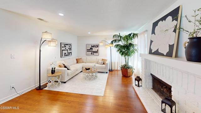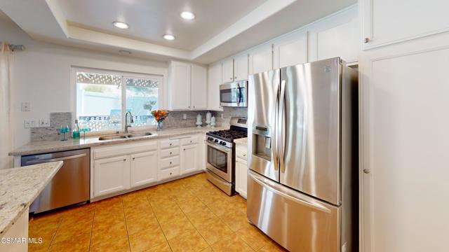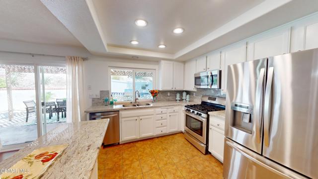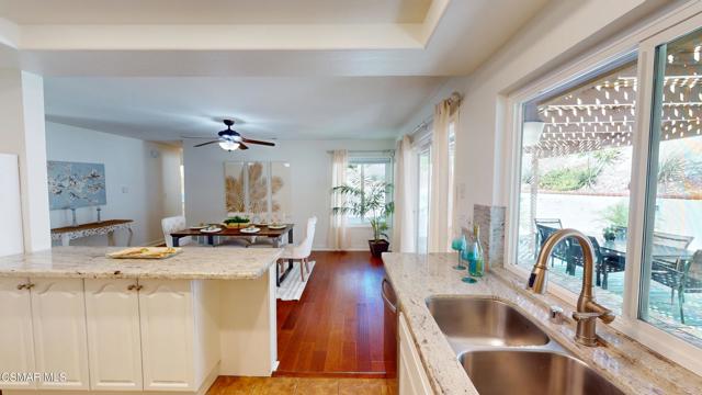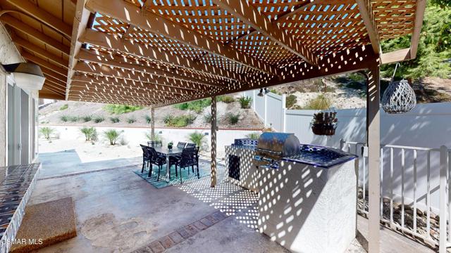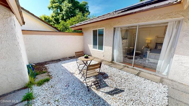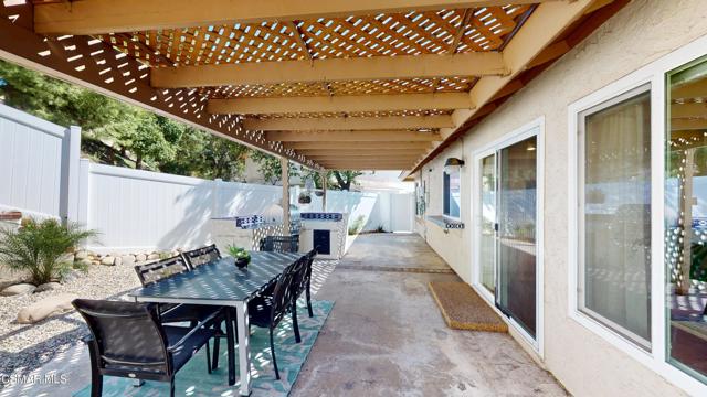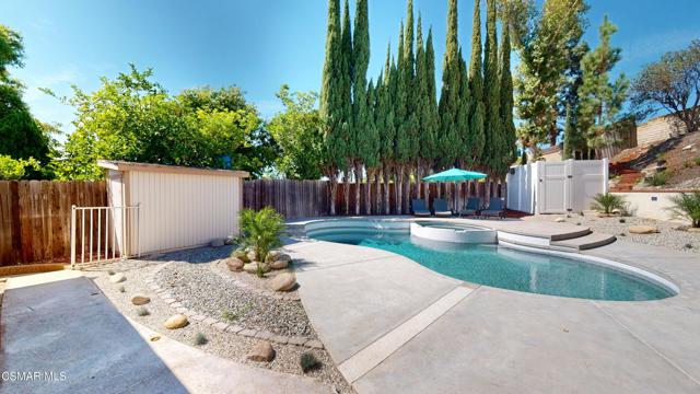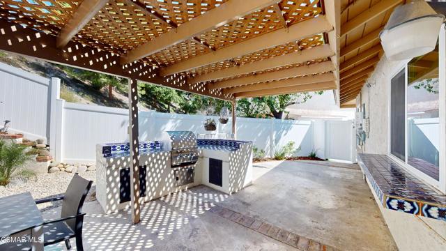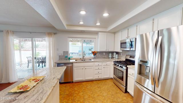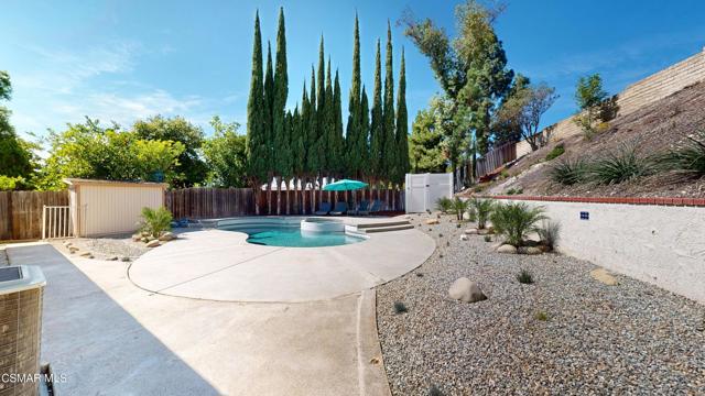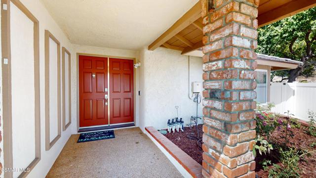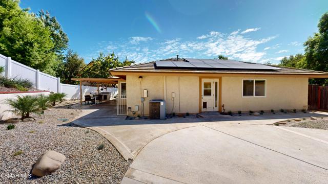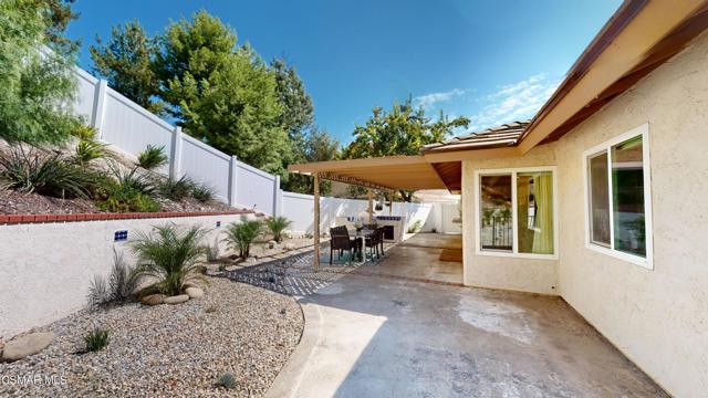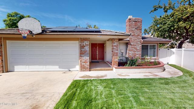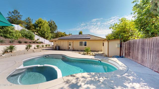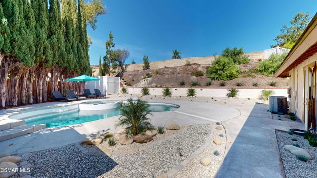 Discover this exquisite single-story gem nestled at the end of a serene cul-de-sac in a sought-after Thousand Oaks neighborhood. This meticulously updated home boasts a nearly $100k owned solar system, ensuring exceptional energy efficiency. Step through the double front doors into a cozy living room featuring a charming brick fireplace. The adjacent dining area, complete with a ceiling fan, flows seamlessly into the gourmet kitchen. The kitchen dazzles with granite counters, a large peninsula for bar seating, stainless steel appliances, and freshly painted white cabinets. The primary bedroom is a tranquil retreat with double doors, a ceiling fan, a slider to a private courtyard, and a walk-in closet. Its en-suite bathroom showcases a new dual vanity with grey cabinets, marble countertop, modern light fixtures, and an oversized tub/shower combo. Two additional spacious bedrooms are conveniently located near a refreshed full hall bathroom with a newer marble-topped vanity. This home shines with fresh interior paint, dual-pane windows, updated HVAC and duct work, engineered hardwood floors, LED recessed lighting, and a durable concrete tile roof. The entertainer's backyard, set on a sprawling 10,000+ SF lot, features a remodeled pool and spa with Pebble Tec finish, modern white tile, new coping, and new equipment, including a heater. Enjoy outdoor dining under a trellis-covered BBQ center, accessible via the kitchen slider. Newly landscaped front and back yards enhance the home's curb appeal. Additional highlights include a two-car garage with an automatic roll-up door and direct home access. Located near top-rated parks, schools, and shopping, this home offers both luxury and convenience. Don't miss this rare opportunity--schedule a viewing today before it's gone!
