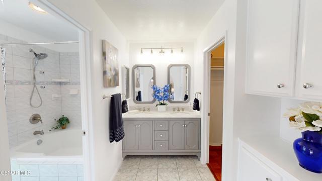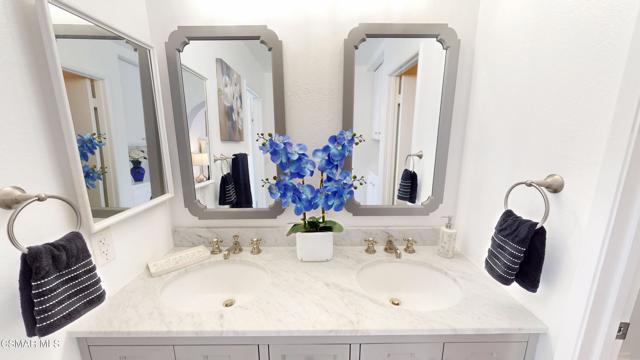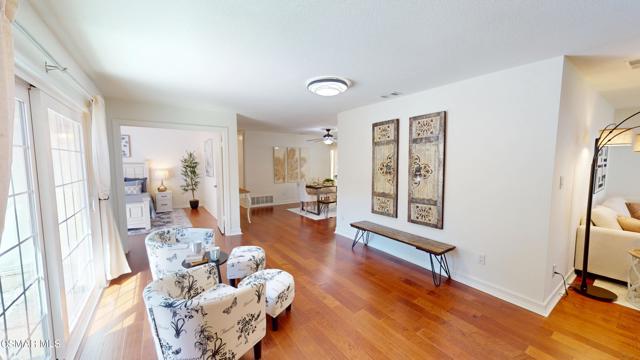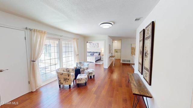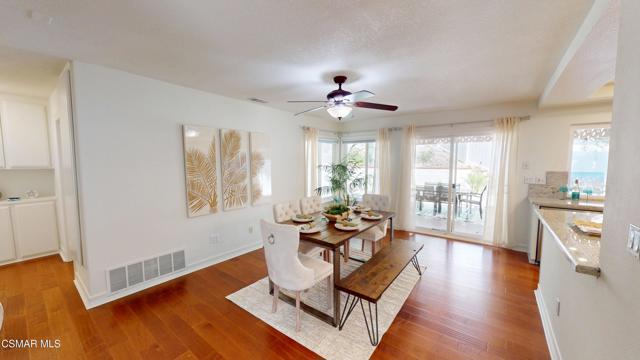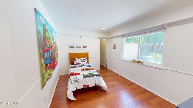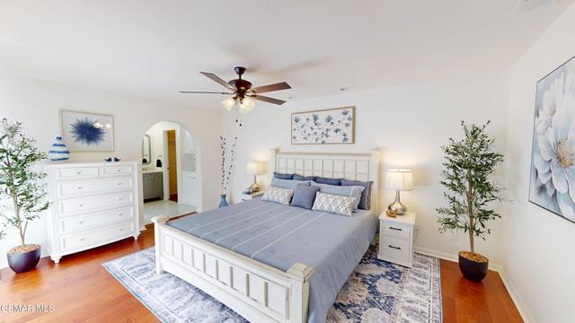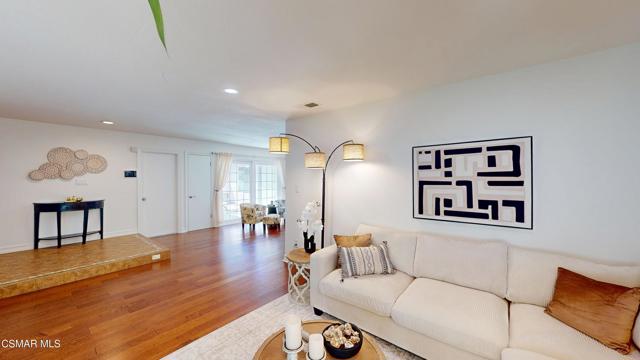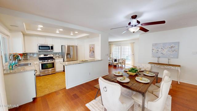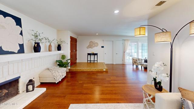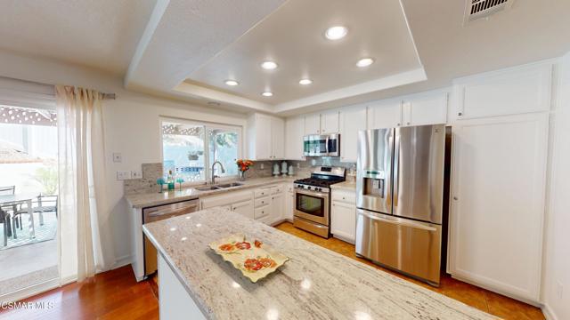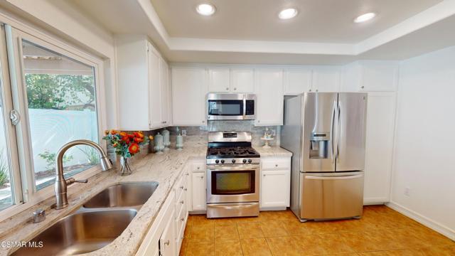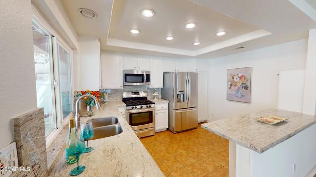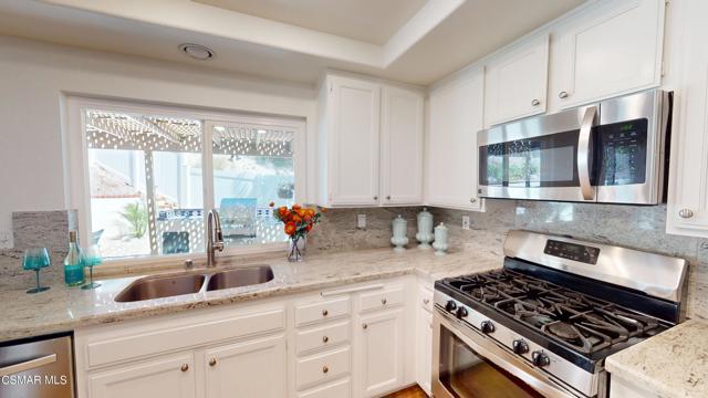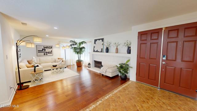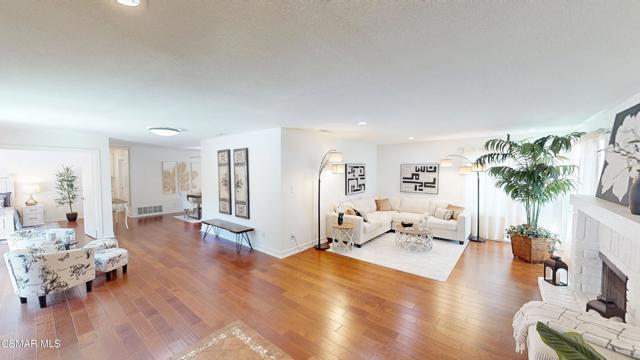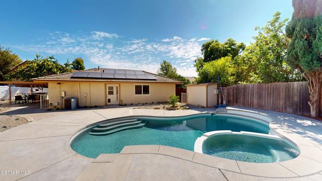 Discover this exquisite single-story gem nestled at the end of a serene cul-de-sac in a sought-after Thousand Oaks neighborhood. This meticulously updated home boasts a nearly $100k owned solar system, ensuring exceptional energy efficiency. Step through the double front doors into a cozy living room featuring a charming brick fireplace. The adjacent dining area, complete with a ceiling fan, flows seamlessly into the gourmet kitchen. The kitchen dazzles with granite counters, a large peninsula for bar seating, stainless steel appliances, and freshly painted white cabinets. The primary bedroom is a tranquil retreat with double doors, a ceiling fan, a slider to a private courtyard, and a walk-in closet. Its en-suite bathroom showcases a new dual vanity with grey cabinets, marble countertop, modern light fixtures, and an oversized tub/shower combo. Two additional spacious bedrooms are conveniently located near a refreshed full hall bathroom with a newer marble-topped vanity. This home shines with fresh interior paint, dual-pane windows, updated HVAC and duct work, engineered hardwood floors, LED recessed lighting, and a durable concrete tile roof. The entertainer's backyard, set on a sprawling 10,000+ SF lot, features a remodeled pool and spa with Pebble Tec finish, modern white tile, new coping, and new equipment, including a heater. Enjoy outdoor dining under a trellis-covered BBQ center, accessible via the kitchen slider. Newly landscaped front and back yards enhance the home's curb appeal. Additional highlights include a two-car garage with an automatic roll-up door and direct home access. Located near top-rated parks, schools, and shopping, this home offers both luxury and convenience. Don't miss this rare opportunity--schedule a viewing today before it's gone!