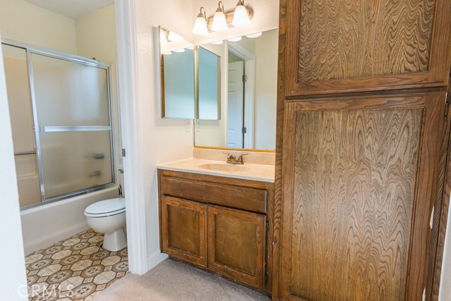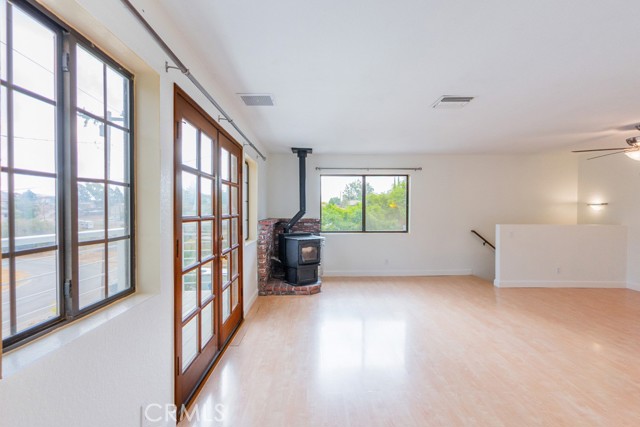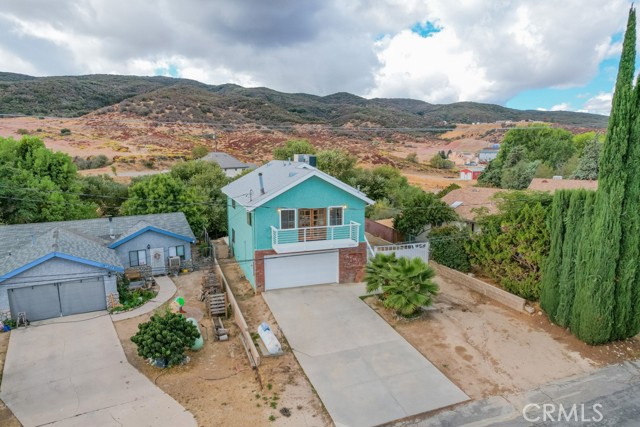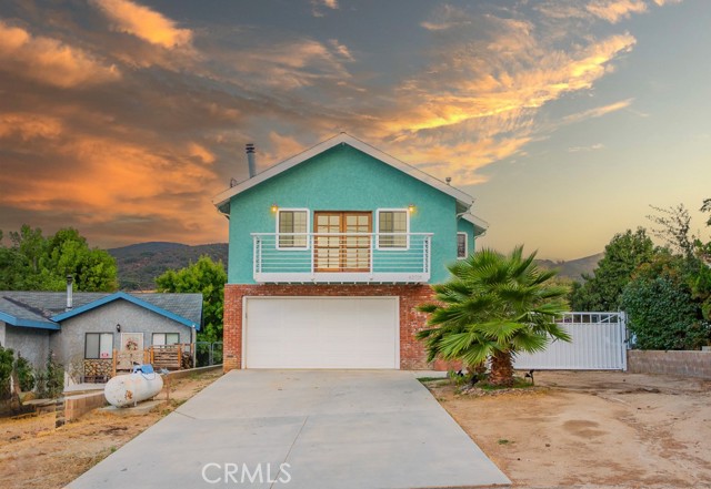 Welcome to this beautifully upgraded two-story, 3-bedroom, 3-bath home in the peaceful Lake Hughes community. Recent upgrades include brand-new windows, carpeting, and fresh interior and exterior paint, making it truly move-in ready. The upper level features a spacious living room with French doors opening to a balcony with panoramic mountain views. A cozy pellet stove with built-in thermostat and automatic ignition provides warmth in winter, while a Nest thermostat adds modern comfort. For cooling, the home includes both a swamp cooler and rooftop AC condenser, with upgraded upducts for efficient airflow throughout the upstairs bedrooms, living room, and kitchen. The kitchen offers granite countertops, stainless steel appliances, and LED lighting. This level also includes a primary suite with en suite bath, a second bedroom and bath, and a convenient laundry nook with washer and dryer. Downstairs, a larger primary suite includes its own family room, full bath, and sliding doors to the backyard—ideal for privacy or multigenerational living. The 2-car garage offers extra storage, and a gated RV driveway wraps along the side of the home. Outdoors, enjoy a deep fenced backyard with a concrete terrace and large aluminum storage shed, while the palms in the front add a true California feel. Whether you're seeking a turnkey home with beautiful hilltop views or a tranquil environment suited for multigenerational living, this property offers the perfect blend of charm and modern upgrades.