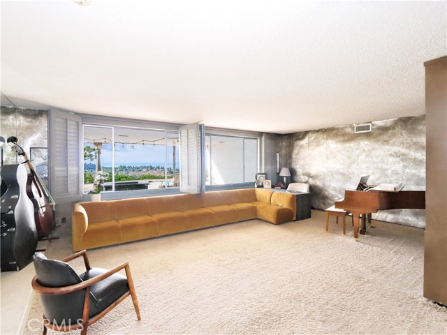 Behind the exclusive gated community of Rolling Hills lies a property of rare distinction—an expansive private sanctuary offering over two lush acres with commanding, unobstructed 180-degree views that stretch from Malibu’s coastline to the twinkling lights of Long Beach. This is not just a home, but a once-in-a-generation opportunity to own a legacy estate in one of Southern California’s most coveted communities. The single-level residence, designed in the mid-century modern tradition, carries a timeless character with details that celebrate an era of artistry and elegance. A circular dining room, sunken living room with a built-in custom mohair sofa and baby grand piano, original terrazzo floors, warm wood paneling, and metallic wallpaper evoke the glamor of the 1960s—inviting a discerning buyer to reimagine and restore while preserving its history. With seven bedrooms—including five ensuite baths—the home offers extraordinary flexibility for family, guests, or multigenerational living. Nearly every room frames panoramic vistas, blending indoors and outdoors in seamless harmony. Additional features include two large living spaces, a dedicated dining room, a kitchen with breakfast nook, and an attached ADU complete with bedroom, bath, kitchenette, and its own living and dining areas. The grounds are equally inspiring. A serene front garden with a tranquil fountain welcomes you, while the backyard reveals endless potential. The existing pool is perfectly sited to capture the sweeping city and ocean views, offering the chance to transform it into a stunning centerpiece for outdoor living and entertaining. A horse corral and abundant usable land provide room for expansion, equestrian pursuits, tennis or pickle ball courts or simply enjoying the peace and privacy of the acreage. Mature fruit trees—avocados, persimmons, and sweet orange and grapefruits—enrich the property with a sense of retreat and abundance. The driveway is thoughtfully set back from the main road, offering an added layer of privacy and protection from sound, while the sought-after Crest Road gate ensures effortless access in and out of the community—an uncommon convenience in Rolling Hills. Opportunities of this scale, location, and character in Los Angeles County are exceedingly rare. More than a home, this estate represents a legacy—a canvas for creating a truly spectacular residence to be cherished for generations.