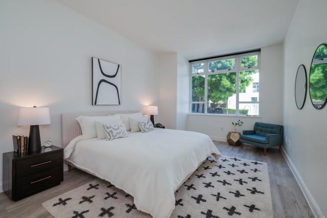 Welcome to The Discovery at Cortez Hill, your urban sanctuary in the heart of the city. Enjoy an array of upscale amenities including a rooftop pool and spa, fitness center, social lounge, and 24-hour concierge service. This spacious two-story walk-up offers 1,610 square feet of living space, complete with a balcony and private patio, and is the lowest-priced unit per square foot in the entire building. A rare find, this residence features two separate entrances: one with direct street access and the other from the building’s second floor. Additional highlights include side-by-side parking, a deeded storage unit, and abundant closet space in both bedrooms and the versatile flex area. The main living area showcases floor-to-ceiling windows, a large balcony, and an ambient fireplace, creating an inviting atmosphere. The kitchen is outfitted with stainless steel appliances, granite countertops, under-cabinet lighting, and luxury vinyl plank flooring throughout. The split-level layout offers ideal separation for guests or privacy. The lower level features the primary suite and a flex space perfect for a home office or den, with direct patio access to the street. Parking spaces are 189 and 241 located on P1. The storage unit is L147 located on P1. Lockbox is on the left side when you enter the closet behind the door(serial 2400250).