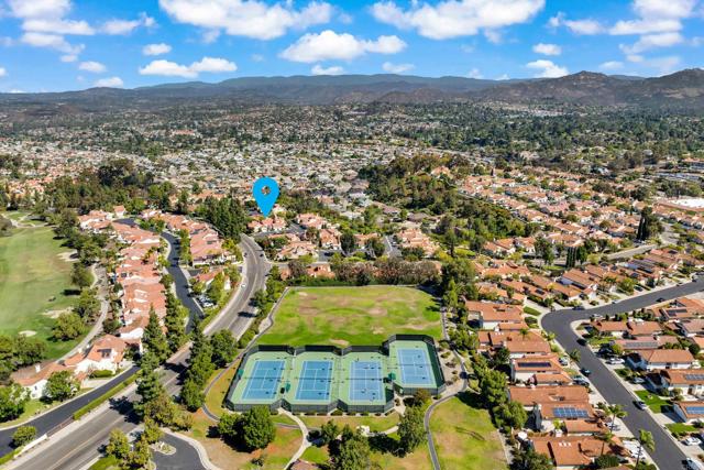 Nestled at the end of a quiet cul-de-sac, this beautifully maintained home offers the perfect blend of comfort, convenience, and style. Step inside and you’ll immediately notice the bright, airy feel created by vaulted ceilings in both the living room and the primary suite, complemented by two skylights that fill the home with natural light. The open and inviting floor plan features a spacious living room that flows seamlessly into a formal dining area — ideal for entertaining. The oversized kitchen offers abundant counter space, a cozy eat-in breakfast nook framed by a charming bay window, and updated stainless steel appliances including a microwave, dishwasher, and refrigerator. Throughout the home, stunning white oak wood flooring adds a touch of modern elegance, while the inside laundry room and direct garage access add everyday convenience. Step outside to your private back patio and take in peaceful mountain-top views — the perfect spot to relax with a morning coffee or unwind after a long day. Residents of the Las Brisas community enjoy access to a variety of resort-style amenities, including Lucido Park with playground, tennis courts, multiple sparkling pools, and more. Located within the highly acclaimed Poway Unified School District, this move-in ready home truly has it all — exceptional location, thoughtful upgrades, and a welcoming neighborhood atmosphere.