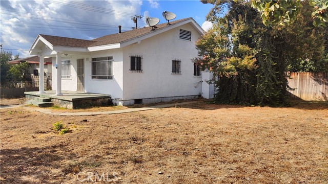 Single Family House with big lot. House is built toward the front left of the lot if you are looking at the house, the right side of the lot and the back yard is big enough to expand the house or build an ADU(s) or possibly another house (buyer to verify with City). 2 decent size bedrooms with walk in closet and another small storage room which can be use as 3rd room with laminate flooring. 1 full bathroom in decent shape. Large living room and a dinning area. House has front porch, front gates and back gate securing the house. Parking in the house back yard with secure gate from alley access. Very large backyard with patio and a big mature fruiting Avocado tree. Kitchen and bathroom are in decent condition. Central AC/Heat. Laminate wood flooring easier for cleaning. Convenient location just 3.3 miles away from Chino Hills costco, 1.9 miles to Pomona Walmart, and close to Home Depot, restaurants, supermarkets.