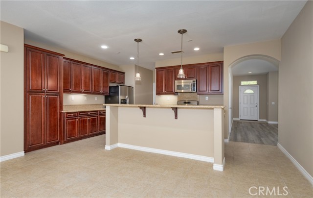 Welcome to The Reserve at Crafton Hills! This beautiful Single-Story Home offers the perfect blend of comfort, space, and style. Featuring 4 spacious bedrooms and 2 bathrooms with dual sinks, this open-concept floor plan is designed for modern living. The kitchen boasts granite countertops, stainless steel appliances, a center island with bar seating, and plenty of cabinet space, flowing seamlessly into the large family room with a cozy fireplace. You’ll also enjoy a formal dining area, separate laundry room, and generous living room ideal for entertaining or relaxing. Step outside to a large backyard with a covered patio and elevated deck, perfect for outdoor dining and enjoying the beautiful mountain views. The low-maintenance landscaping makes upkeep a breeze. Additional features include a 3-car garage with built-in storage. Located in the desirable Reserve at Crafton Hills community, this home combines comfort, convenience, and charm—ready for you to make it your own!