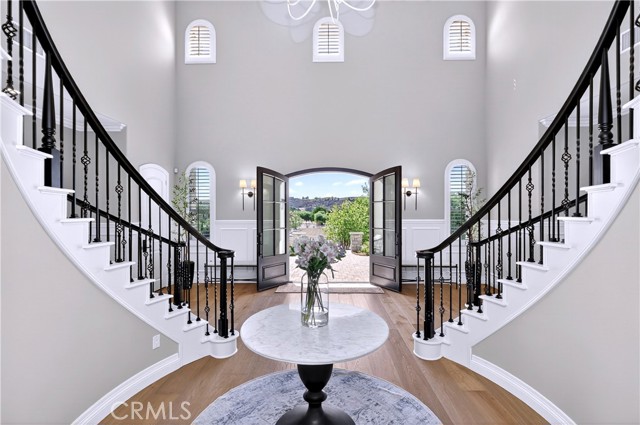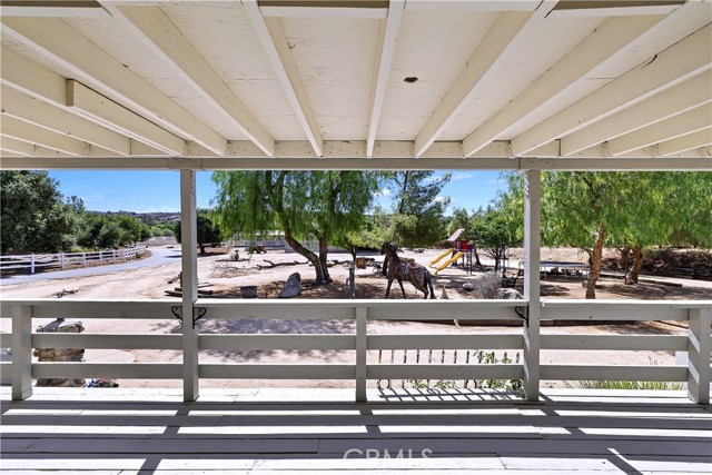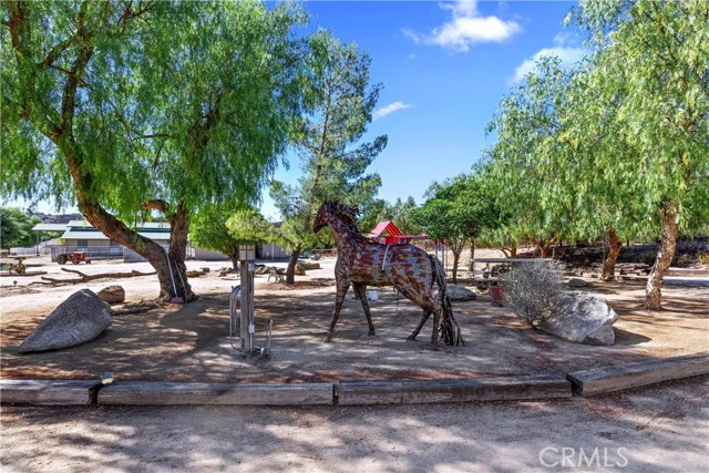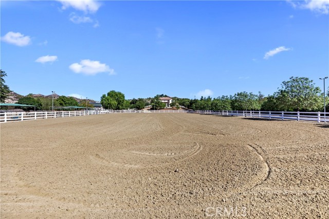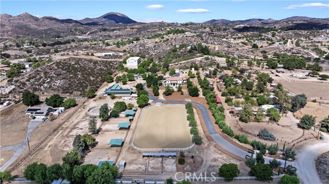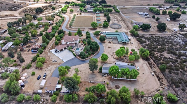 Exceptional Horse Ranch in the Heart of Temecula Wine Country Welcome to Fallen Oak Ranch—an extraordinary equestrian estate perfectly situated in Temecula’s Wine Country, just minutes from award-winning wineries, restaurants, & shopping. The custom-built main residence blends rustic charm with modern sophistication. The designer chef’s kitchen is a showpiece with exposed brick walls, sleek quartz counters, a rich wood-topped island with built-in storage, farmhouse sink, & top-of-the-line stainless appliances including a professional-grade range & oversized refrigerator. Gold hardware, custom cabinetry, & designer lighting create a warm yet refined atmosphere—ideal for entertaining or everyday living. The formal dining room is timeless & inviting with custom wainscoting, soft wallpaper, exposed beams, & a statement chandelier. Natural light pours through plantation shutters onto warm wood floors & a built-in buffet with open shelving—perfect for elegant dinners or festive gatherings. The family room offers relaxed sophistication with a stone fireplace, custom built-ins, & natural light. Plantation shutters, crown molding, & wood floors complete the picture, creating a space that’s both stylish & comfortable. The home includes five spacious bedrooms, five baths, & an office. The luxurious primary suite features a cozy fireplace, wood-paneled ceiling, dual walk-in closets, & a spa-inspired bath with jacuzzi tub & large shower. Additional highlights include surround sound, plantation shutters, dual A/C units, & expansive covered patios for outdoor entertaining. A separate manufactured home offers 2 bedrooms, 2 baths, an office, covered patios, & enclosed yard—ideal for guests, staff, or rental income. Equestrian facilities are top-tier with a Blue Ribbon barn offering 16 stalls (8 with runs), automatic waterers, fly spray system, tack room, office, & two wash racks. Riders will love the lighted arena (approx. 130x250)), 60’ round pen, hot walker, & six large outdoor pens with shelters. Designed for professional or recreational use, it’s a horse lover’s dream. Sustainably equipped with owned solar (68 panels, 55 kWh storage), high-producing well with five holding tanks, & RV hookups with 50-amp service & waste dump. Fully fenced & gated, the ranch offers peace, privacy, & stunning views of the surrounding hills. Fallen Oak Ranch combines elegance, comfort, & functionality, an exceptional opportunity to own one of Temecula’s premier horse properties.