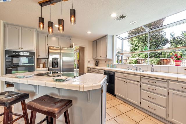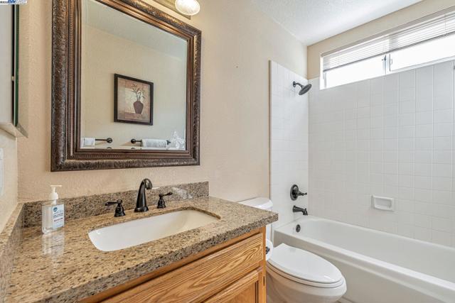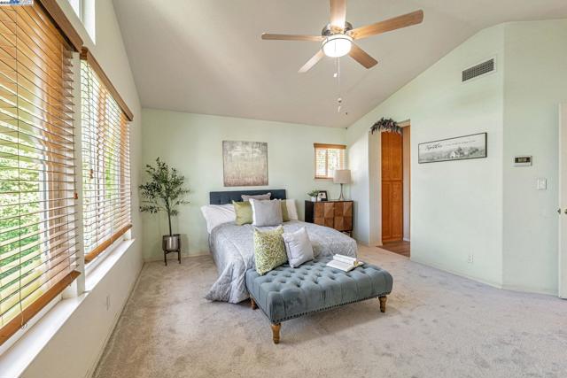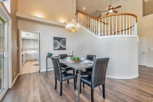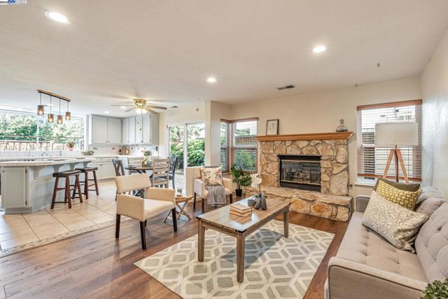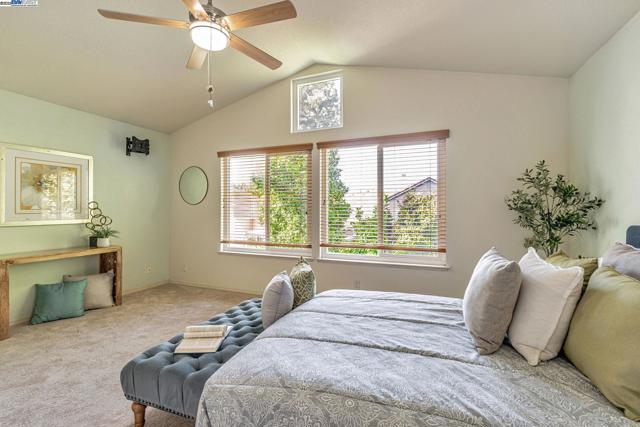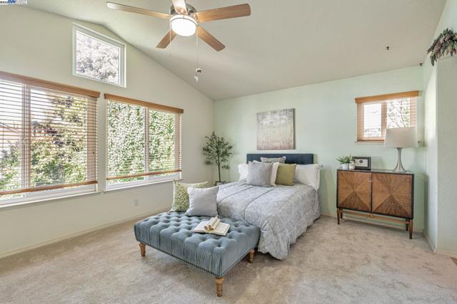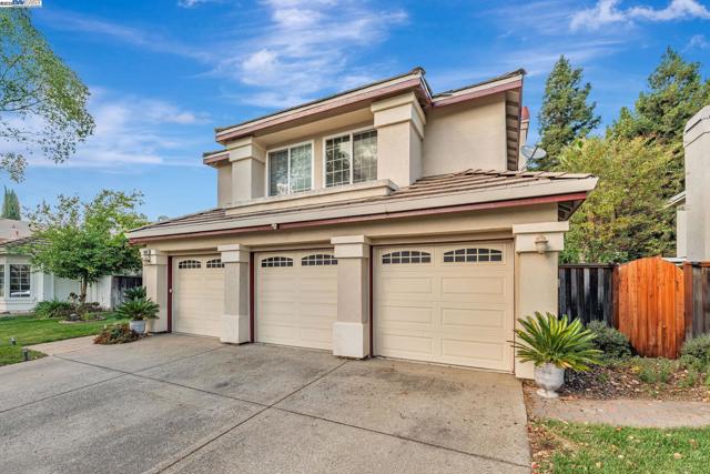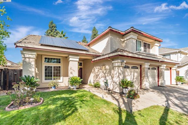 Welcome to 1640 Tahoe Circle, a spacious 4-bedroom, 3-bath home with 2,521 sq. ft. of living space. Ideal for multi-generational living, this residence features a convenient downstairs bedroom and full bath. Beautiful formal living and dining rooms with lots of windows bringing in natural light, laminate flooring and ceiling fans. Enjoy evenings by the cozy fireplace while cooking in the large kitchen with island, pantry, tile counters and floors. Elegant stairway leads to upstairs. New carpet in the hallway and bedrooms. A private primary suite includes a large walk-in closet with mirrored doors, dual sinks, stall shower with glass doors, and relaxing jacuzzi tub. Added comforts include a whole house fan, ceiling fans, alarm system, laundry room, alarm system, Sun Run solar and water softener. The 3-car garage is finished with insulated doors and epoxy floors. Outdoors, enjoy mature landscaping, paver patio, bench seat and storage shed. This move-in ready home combines function, style, and comfort being centrally located in the Regency Square subdivision in Tracy.