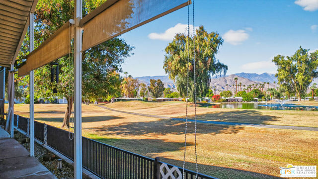 Don't miss this OPPORTUNITY to own one of the best manuf homes in THE BEST & most highly sought after 55+/Active Adult golf course community in the valley desert. This 2001, 2bed + Den & 2bath 1800+ sq foot home with attached 2 car garage will NOT LAST LONG. Resort living, this senior guard gated community offers security, tranquility and many member/social activities to include multiple pools/spas, clubhouse, golf with member discounts, onsite restaurant, tennis/pickleball...even a dedicated doggie park. This home offers many enhancements to include but not limited to: open floor concept in kitchen/dining/living great room, laminate flooring throughout (with exception of primary and guest bedroom which are carpeted), granite countertops with backsplash in kitchen plus refinished countertops in both bathrooms plus laundry room and hallway, all new appliances, all new interior and exterior lighting. Primary bedroom comes with double door entry plus a walk in closet. Primary bathroom comes with double vanities, large tub and a walk-in shower. Guest bathroom also has a walk-in closet. Exterior enhancements include but not limited to hot tub, shade roller blinds, desert landscaping, accent lighting. 2 car garage comes with added shelving for storage. Rarely lived in by present owner but completely upgraded for the next owner, YOU!! Come See, you will not be disappointed.