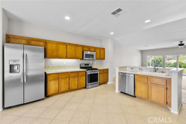 Hi there, are you one of those people who keep missing out on getting into one of these almost half acre properties in Banning? Well here's your chance, don't miss it this time... Welcome to 1454 Bryan St, located in the beautiful Fair Oaks Ranch community on the south side of Banning at the foothills of the San Jacinto mountains. Come and enjoy no HOA, LOW taxes, and the freedom to spread out and LIVE!!! Featuring 4 bedrooms, 2 baths, and sitting in 2378 sqft, this home is thoughtfully laid out, bright, airy and very spacious. As you pull up, the first thing you'll notice is the mature trees and beautiful landscaping. Be sure to take note of the oversized driveway, double gates and RV parking on the left. When you enter, the tiled hallway opens up to a massive family/dining room with fireplace, from where you can relax and enjoy the stunning mountain views. This space is overlooked by your well appointed, beautiful kitchen with tons of storage, ample work surface and quartz countertops. The oversized primary bedroom has a large bathroom with jetted tub, separate shower, walk-in closet and takes up the entire west wing of the home, and has a slider door that takes you out to your covered patio. Another welcoming feature is that the primary suite is completely separated from the other good sized secondary rooms, and all rooms have ceiling fans and enjoy stunning views. The backyard is an entertainers delight, with more than enough room to add a pool (an infinity pool would be amazing!!!) The entire home has been freshly painted inside, so just move on it and start writing your next chapter of your life, I promise you'll be glad you did!!!