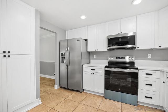This home has it all, Close to the San Luis Rey gate at Pendleton. New kitchen cabinets, Quartz countertops & backsplas. Newl kitchen appliances, washer/dryer included. Open floorplan with view from kitchen to living room & dining room. Air conditioning, plank flooring & tile in primary living areas & stairs. Vaulted ceiling in large Primary bedroom with ceiling fan. Additional room off of primary, can be used as office space, permits unknown. Good size bedrooms with ceiling fans. Backyard has a covered patio and grass area, great for entertaining.New windows installed. Community pool and spa is a short walk around the corner. Easy to show and seller is motivated.