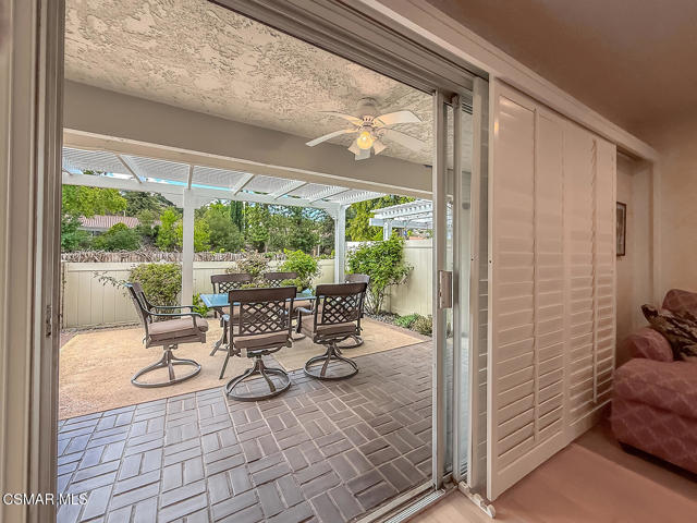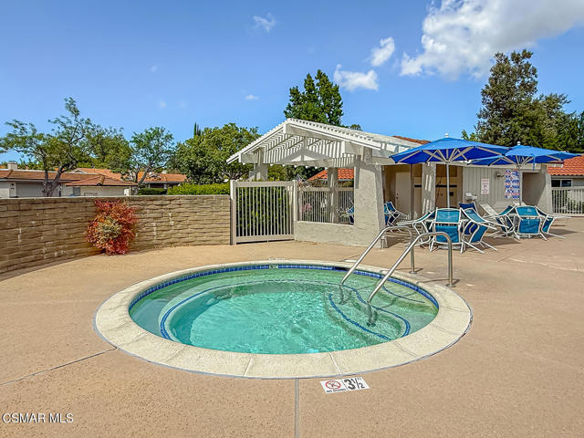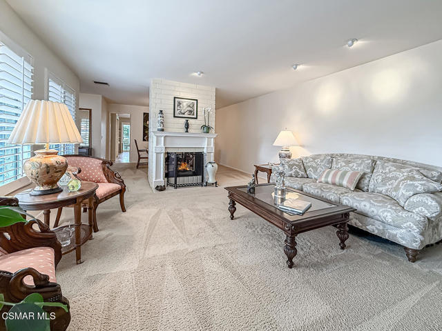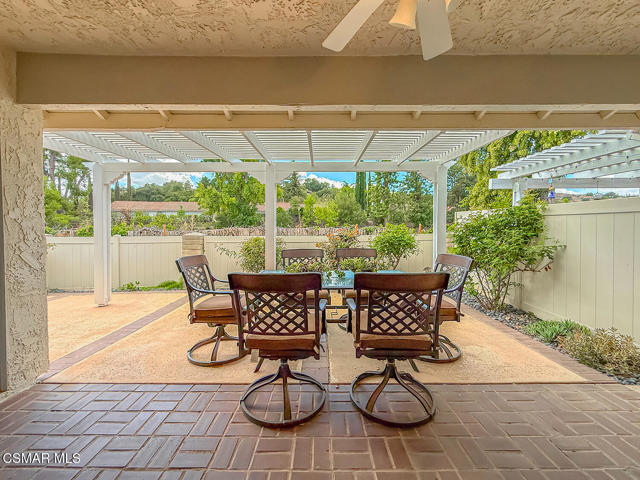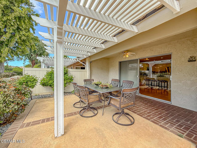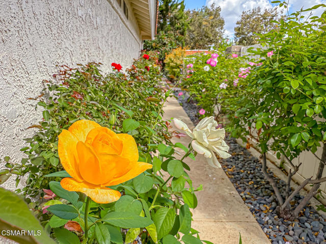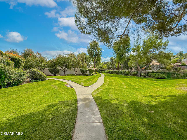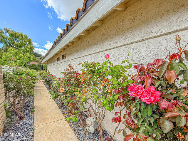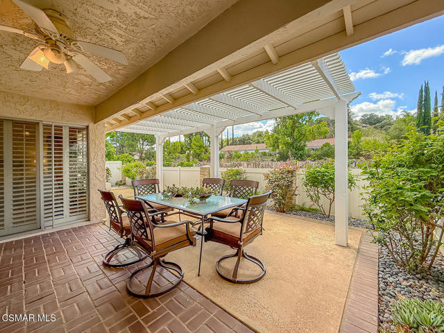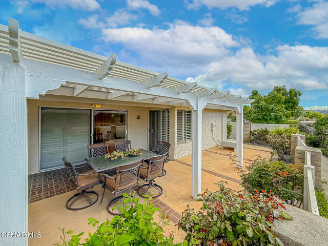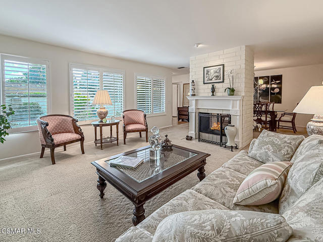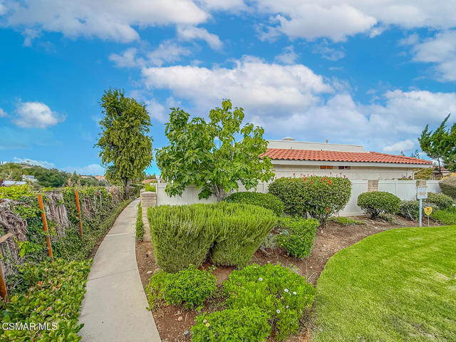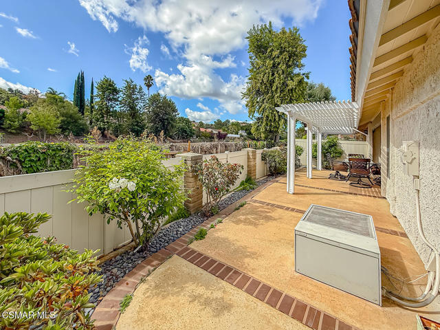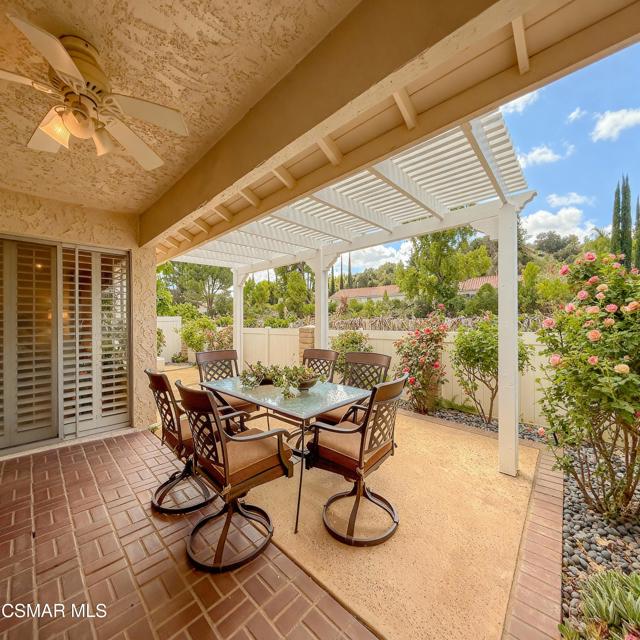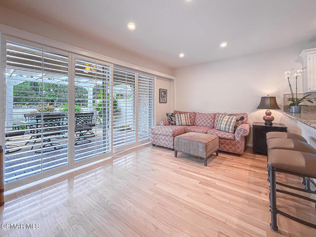 Charming Single-Story Retreat in the Heart of Westlake Village with NO Interior Steps, NO Rear Neighbor, CORNER Location, PRIVATE Front & Back Patios, UPGRADED Kitchen & Baths, and WALKABILITY to Westlake Lake! Tucked within the peaceful and well-maintained community of Triunfo West, this 2-bed / 2-bath home offers a bright floorplan with community features including TWO Pool & Spa areas! From the moment you enter the gated front patio--lined with lush greenery--you'll appreciate the sense of calm and comfort that defines this property. Step inside and you're welcomed by HANDSOME real wood flooring and an open-concept Living & Dining Room with plush carpet, a dual-sided fireplace, and THREE pairs of tall windows that overlook the patio, bathing the space in natural light. The upgraded Kitchen boasts attractive granite countertops, mosaic-tile backsplashes, a stainless-steel sink, and matching Frigidaire stainless-steel appliances--all complemented by ample cabinetry & pantry storage! A bright and inviting Family Room sits just off the Kitchen, enjoying large sliding glass doors that open to the backyard and frame serene green views. Tucked behind bifold doors, the indoor Laundry Area flanks the Kitchen to make laundry effortless & convenient! The spacious Primary Bedroom is a peaceful sanctuary with tall windows & sliding glass doors to the backyard, and TWO mirrored closets. Its en-suite bathroom features an upgraded stone-topped vanity with skylight above, plus a separate water room with fully revamped shower, artistic tilework, and frameless glass doors. The Secondary Bedroom offers excellent flexibility--perfect for guests or a home office--with wood flooring, a FANTASTIC Murphy bed, built-ins, and views of the front patio. The full Hall Bathroom has also been redone with upgraded tile floors, a built-in stone-surfaced vanity, and a redone tub/shower combo with tile surrounds + frameless glass doors! Step outside to your PRIVATE backyard retreat--with NO rear neighbor--only peace and greenery beyond! Enjoy the covered concrete patio and side pathway which showcases a VIBRANT row of blooming rose bushes in every shade--pink, red, yellow, orange, white and more! Your 2-car garage is directly accessible from the front patio and is complete with built-in cabinetry. Residents of this sought-after community enjoy access to TWO sparkling pools & spas, shuffleboard courts, greenbelts, and scenic walking paths--all just moments from Westlake Lake, boutique shopping, and fantastic restaurants.This is the kind of peaceful, bright, and thoughtfully updated home that rarely comes available in such a prime Westlake Village location--don't miss it!