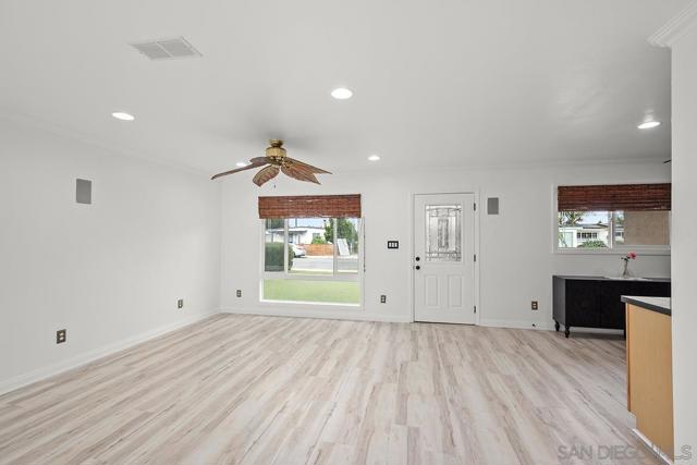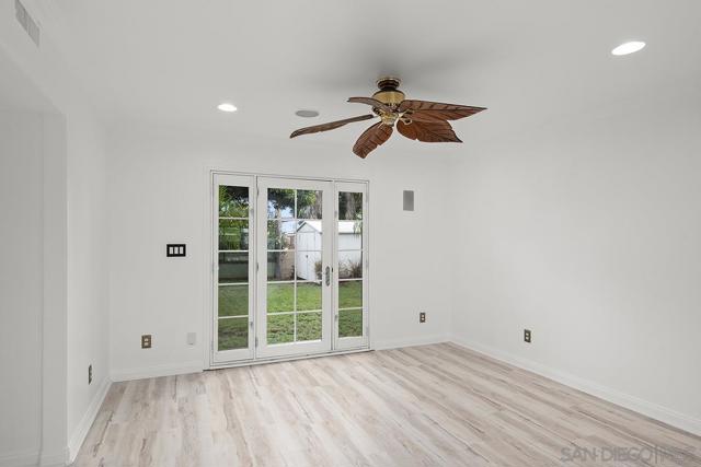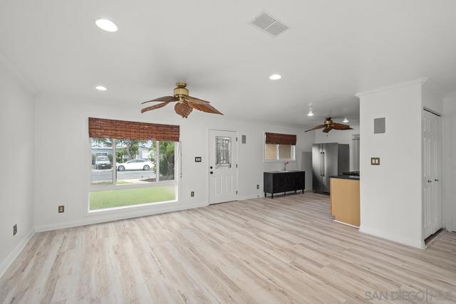 Immaculate single story single family home located close to military bases, beaches, and the estuary. Walking distance to local schools. Brand new beautiful flooring. Freshly painted interior. Remodeled bathrooms with newer faucets, vanities and so much more. Kitchen boasts newer cabinets, new fridge and new stove. Primary bedroom is very spacious with French doors leading to the lush backyard with mature landscaping. The huge laundry room has plenty of space to add a walk-in pantry. The one car garage is ideal for a compact car or a possible conversion into a third bedroom, pending permit approval. Nice shed in the backyard to house gardening tools. The Driveway has potential space to park an RV.