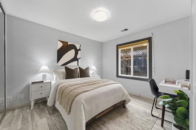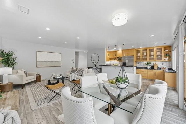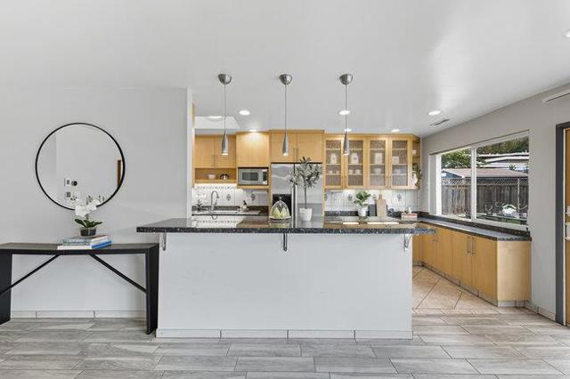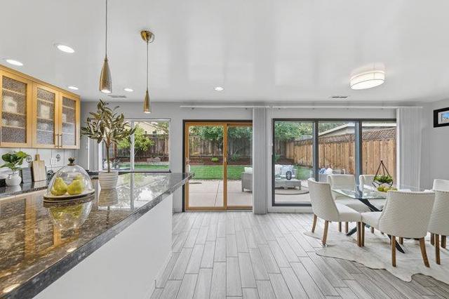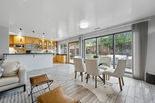 Deep in the heart of Woodside Plaza, this meticulously maintained single-level home offers 3 bedrooms and 1 bathroom across 1,210 SF of stylish living space. The home's open-concept design seamlessly integrates the kitchen, dining, and living areas, creating an inviting space filled with natural light from sun tubes, expansive windows and a sliding door which spills out to the backyard. The kitchen, thoughtfully crafted, features ample cabinetry, extensive counter space, and a breakfast peninsula for casual dining. The backyard retreat features new landscaping with a lush grassy area, large patio and retractable awning to create a cozy outdoor space. Smart European upgrades include multi-zone radiant floor heating and sleek European rolling shutters that provide privacy and blackout capability. A wrap around front porch with hammock hooks offers a shady place to relax. The attached two-car garage includes a wine cellar refrigerator and a dedicated laundry work area. Enjoy the warm community atmosphere with evening strolls or bike rides. Just blocks from beloved Maddux Park, Woodside Plaza's shopping center, and Woodside High school. Close to bustling downtown Redwood City, CalTrans Sequoia Station, Silicon Valley and Stanford University. Quick access to Highway 280. Welcome Home.
