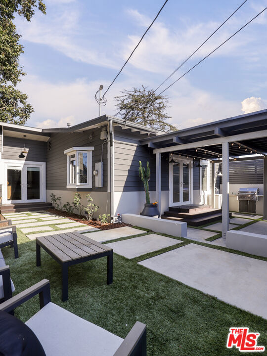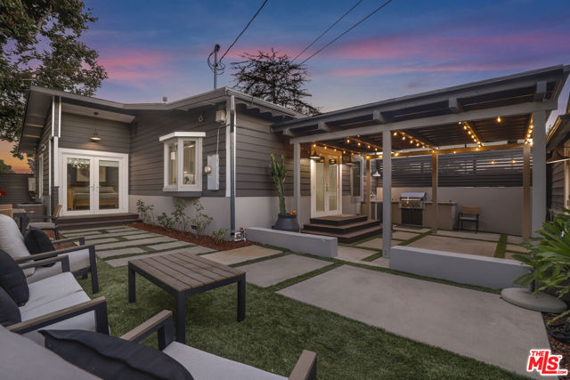 Perfectly positioned in the heart of West LA, this meticulously remodeled California bungalow offers the perfect balance of timeless charm and modern luxury. Featuring 3 bedrooms and 3 bathrooms, the home includes 2 bedrooms in the main residence plus a versatile third bedroom with it's own private entrance, en suite bath, dedicated HVAC and secluded yard- ideal for a guest retreat, home office, or personal gym. An open floor plan flooded with natural light showcases beautiful new hardwood floors and designer finishes throughout. The chef's kitchen is a showstopper, featuring quartz countertops, sleek stainless steel appliances, and custom cabinetry. The expansive primary suite boasts high pitched ceilings, French doors leading to the backyard, a spacious walk-in closet, and a spa-inspired bathroom with dual sinks and a luxurious walk-in shower. Venture outside to your private backyard oasis, complete with a built-in outdoor BBQ, full outdoor kitchen, charming gazebo with lights, new landscaping with an automatic sprinkler system, perfect for entertaining or relaxing in style. Every detail has been thoughtfully curated, from the new NEST thermostat and APEC water filtration system to recessed lighting, motion-sensor exterior lights, Blink cameras, and an ADT security system. Additional features include a new fence, wrap-around front porch, 2-car garage, and Google Home smart controls for climate and security. Located in the highly sought-after Richland Avenue Elementary district (rated 10) and moments from premier shops, restaurants, and amenities, this home offers the ultimate in luxury West LA living.