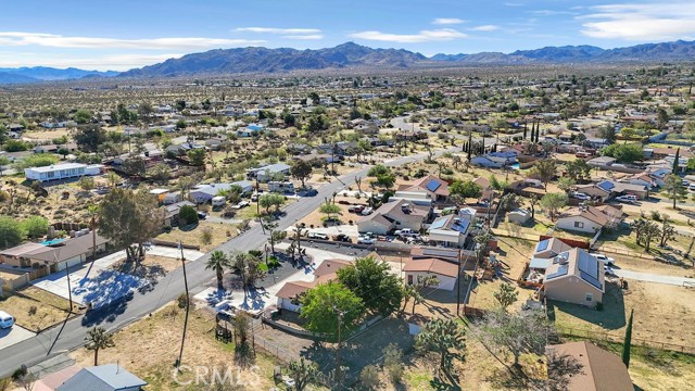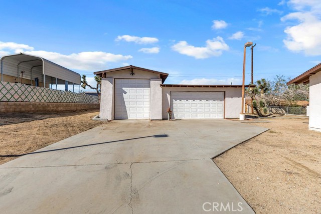 Welcome to 6938 La Habra Avenue in Yucca Valley, a beautifully updated three-bedroom, two-bathroom home offering both comfort and versatility. This property features fresh exterior paint with a lifetime transferable warranty, and is powered as an all-electric home with a solar lease at only $130 per month. The roof is in good condition and approximately five years old, while the newly landscaped front yard showcases clean desert rock for easy maintenance. A large circular driveway provides convenience, along with RV and trailer parking. In addition to the attached two-car garage, there is an impressive detached three-car garage/shop of approximately 1,200 square feet (40x30) that includes an office and bathroom, and is tall enough to accommodate a small RV. Inside, the home has new interior paint throughout, radiant ceiling heat, and a wood-burning stove for cozy desert nights. The primary bedroom features a walk-in closet, carpet that has been professionally steam-cleaned, and a private bath with a stand-up shower. The additional bedrooms offer ceiling fans, tile flooring, and ample space. The kitchen, while in original condition, is exceptionally well-kept and functional. Other property features include dual storm windows, a covered front porch, a rear covered patio, a shed, mature shade trees including fruitless mulberry trees, and enormous epic Joshua Trees. There are laundry hookups for either propane or electric dryers. This home is well-located near shopping, dining, and public transportation, and sits just minutes from Joshua Tree National Park, offering endless hiking, climbing, and outdoor recreation. Yucca Valley also provides proximity to community parks, golf, local schools, and cultural attractions like the Hi-Desert Nature Museum and Joshua Tree’s renowned art and music scene.