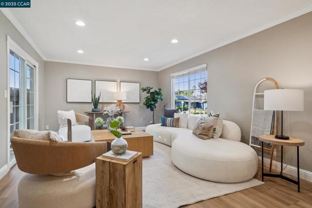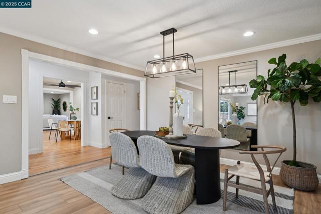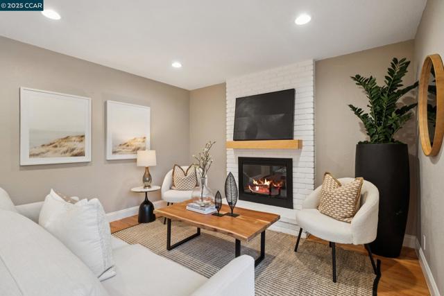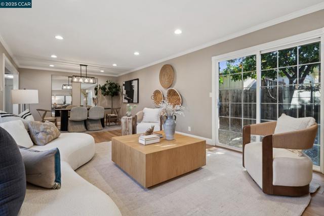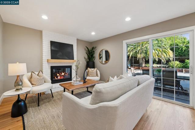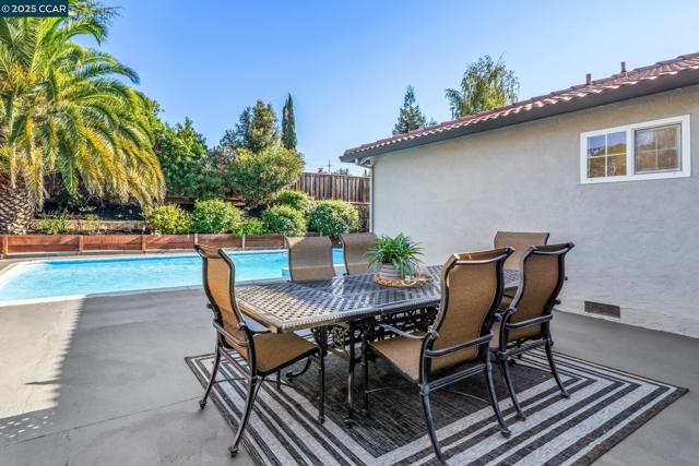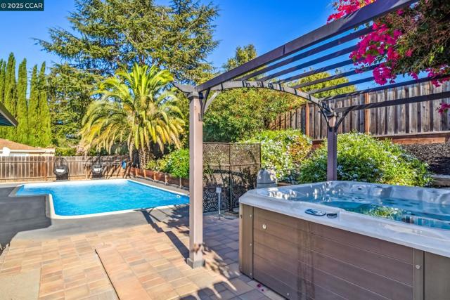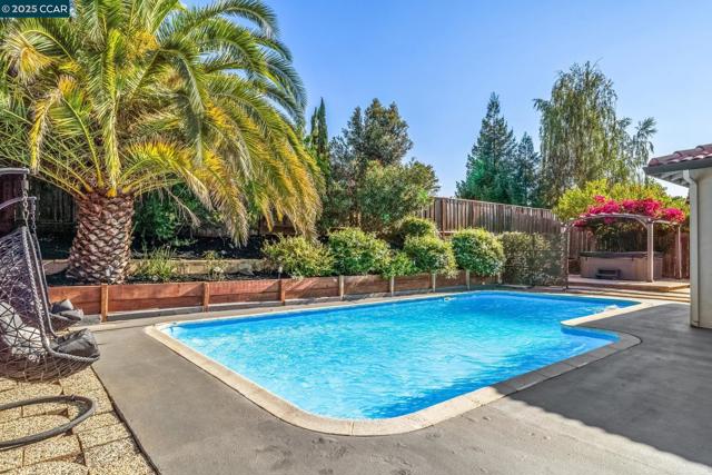 Turn-key, beautifully updated single-level home situated on a quiet court near Lime Ridge open space, shopping, restaurants, trail, park and just minutes to BART & freeway. Remodeled kitchen features Quartz counters, subway backsplash, a pantry, stainless steel appliances and opens to a casual dining area which connects to the cozy family room with fire place. Huge living room / dining room combo. 4 comfortable bedrooms including a primary suite with private, recently renovated bathroom. Tastefully updated guest bathroom. Additional interior highlights: Recessed lighting, modern light fixtures, neutral paint shades, hardwood floors recently refinished, LVP flooring, dual-pane windows & central HVAC (AC unit 2020). Low maintenance yard offers a tropical feel with palm trees, a pool & hot tub. Open Tues 10:30-1; Sat & Sun.