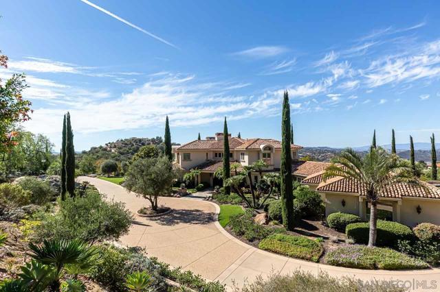 This Breathtaking Custom Estate designed by renowned architect Howard Spector, provides exceptional privacy. Complemented by Award Winning Landscape, spectacular lap pool w/imported antique fountain & lavish stone patios. Appx 5,300 sf in the main house and spacious 700sf detached poolside Casita w/full kitchen & bath. Highly detailed interior finishes include, Custom steel & glass entry doors, William Ohs Custom designed cabinetry, hand carved woodwork details in library/office, exquisite brass & iron stair railings, deep casement windows, solid stone flooring, 4 fireplaces and more! See supplemental remarks for more info. Property features continued: Two piece boosted tile roof with hand made clay tiles, Leased Solar, Saltwater pool option, water purification system, monitored alarm, extensive grounds with acres of usable land. Main home and casita are fully fenced and gated. Adjacent 6.08 acre lot parcel # 189-121-27-00 is also available for additional purchase with this listing, seller prefers to sell together. Estate is located in the Westerly most border of Valley Center appx 1,500 ft from East Escondido. Just minutes from highway 15, California Center for the Arts and numerous fine dining and entertainment venues on and near Grand Ave.