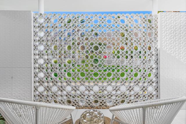 Indulge in the flawless fusion of Hollywood Regency and Mid-Century Modern in this reverently and masterfully remodeled oasis. This storied home, previously owned by the Chasen family (famous Beverly Hills restaurateurs), is nestled within the coveted Indian Canyons Neighborhood in South Palm Springs and was meticulously crafted by renowned Architect Raymond Levanas in the 1960s before being fully renovated by the owners in 2020-2022 with the assistance of acclaimed local designer Michelle Boudreau. Featured in Modernism, this luxurious 4 bedroom, 4 bath sanctuary embodies the architect's original vision while seamlessly integrating upscale contemporary finishes. From the champagne bubble breeze blocks to the terrazzo entryway to the epic mountain views visible from every single room, each thoughtful detail of the home sets the stage for an extraordinary living experience. The living room's captivating fireplace, adorned with a Bauhaus slat design carried above the ceiling, beautifully echoes the sleek aesthetic found throughout the home. The gourmet kitchen is a perfect blend of functionality and style, fully equipped with Subzero/Wolf appliances including a column wine fridge, refrigerated beverage drawers, built-in coffee maker, and a drawer microwave. The premium appliances are beautifully complemented by custom oak built-ins and elegant onyx marble countertops, creating an ideal space for crafting gourmet meals and entertaining guests. Relish in the abundance of natural light that cascades through the floor-to-ceiling Fleetwood sliders, offering mesmerizing vistas of the Indian Canyons Golf Course and majestic mountains. All bathrooms have undergone a spa-like renovation. The primary suite boasts a sitting vanity between the double sinks as well as both an indoor and outdoor shower and an indulgent outdoor soaking tub, ensuring an elevated level of luxury. Temperature controlled two-car garage with new epoxy flooring and a built-in electric charger, and a spacious mud/laundry room with a built-in pebble ice machine. Step outside to the inviting backyard that seamlessly cascades out to the golf course to create the illusion of infinite outdoor space to enjoy two beautifully restored twin pergolas that frame a Hollywood Regency shaped pool with original turtles that were the signature of the home's renowned architect, a dining space next to the kitchen by a thriving fiddle fig tree and fragrant gardenias and a citrus grove. No expense has been spared!