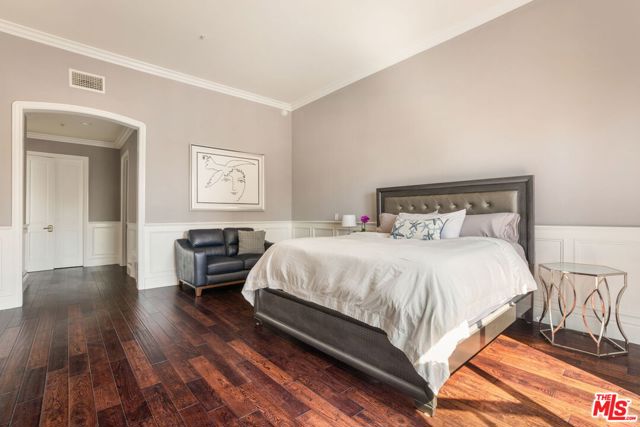 Perched on the penthouse level of Brentwood's premier full-service community, this exquisite corner residence redefines luxury living with unparalleled privacy--no shared walls--and sweeping city views. Soaring high ceilings and expansive windows fill the home with radiant natural light, while every detail has been meticulously remodeled with top-of-the-line finishes, from the upgraded kitchen and primary bathroom to the elegant wood wainscoting, crown molding, and archways and sleek new flooring throughout. A marble-tiled foyer with skylight and double doors sets a grand first impression, leading into the open-concept living and dining room featuring two private balconies, a decorative fireplace, and a wet bar ideal for entertaining. The gourmet kitchen is a dream, outfitted with stone countertops, custom pantry storage, a sunlit breakfast nook, and premium Subzero, Viking, and Bosch appliances, including double ovens, a gas range, and a wine refrigerator. The grand primary suite is a personal sanctuary, offering high ceilings, its own balcony, a custom walk-in closet, and a spa-inspired ensuite clad in marble with heated floors, a ThermaSol steam shower, and jetted soaking tub. A spacious secondary bedroom with ensuite bath provides comfort and privacy for guests, while the laundry room with sink and storage adds everyday convenience. Additional upgrades include the new AC unit and SubZero refrigerator. This home includes three parking spaces in the secure garage plus two additional storage lockers. Residents of this coveted community enjoy unrivaled amenities including a doorman, concierge, valet parking, rooftop pool, spa and sundeck, fitness center, banquet hall, and more. Supremely located in the heart of Brentwood, moments from upscale dining, boutique shopping, and the Brentwood Country Club--and just a short drive to the beach--this penthouse residence offers the ultimate blend of sophistication, comfort, and convenience.