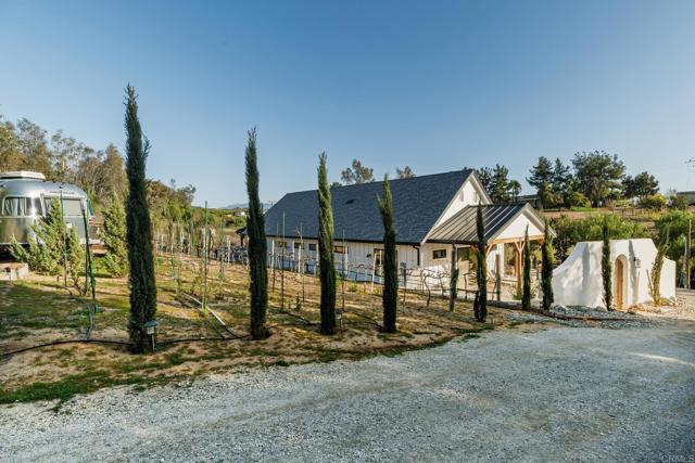 This stunning estate perfectly blends Temecula wine country living with a rare opportunity for fabulous rental income, all on 2.72 acres. Featuring a spacious 3,082 sq ft, 4-bed + office/3-bath main home, plus 4 newly constructed 1-bed/1-bath units totaling an additional 1,945 sq ft, these modern "casitas" were designed with an impeccable eye for style, functionality and rental income or luxurious guest accommodations. Enjoy them as they are now, or they can be easily converted into two duplex units. As you enter the property through the charming gated entrance, you'll appreciate the privacy and spaciousness for all things recreational. With your own sparkling pool, top-of-the-line solar systems, RV parking and actively producing vines, you'll never want to leave your private retreat. Upon stepping into the main home, soaring ceilings and travertine floors guide you to the expansive great room with an inviting wood-burning fireplace. A custom entertainer's kitchen awaits with stainless steel appliances, granite countertops, a Sub-Zero fridge, a 6-burner stove, and a wine fridge. An additional space for formal dining with another stone fireplace greets you at the end of the kitchen. The entry level also includes an office or additional bedroom, a full bath, and laundry room. The custom wrought iron staircase leads to the second floor, where the primary suite and 3 guest bedrooms, plus a guest bath, await. The primary suite boasts an oversized bath with a steam shower and a private balcony with views for days. The backyard off the main home offers a seamless transition to outdoor living with built-in BBQ area and an expansive brick pool deck. Across the property, a long path leads you to the 4-unit casita structure, tucked away for ultimate privacy. Completed in 2022, this licensed Airbnb offers both short- and long-term stays for those looking to explore all that picturesque Temecula has to offer. Let us welcome you home today!