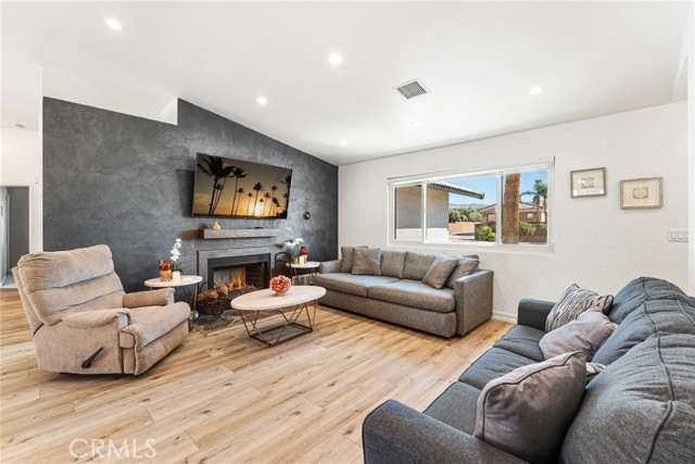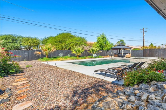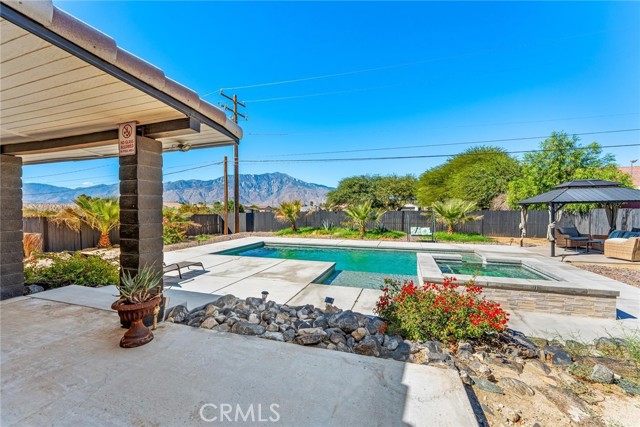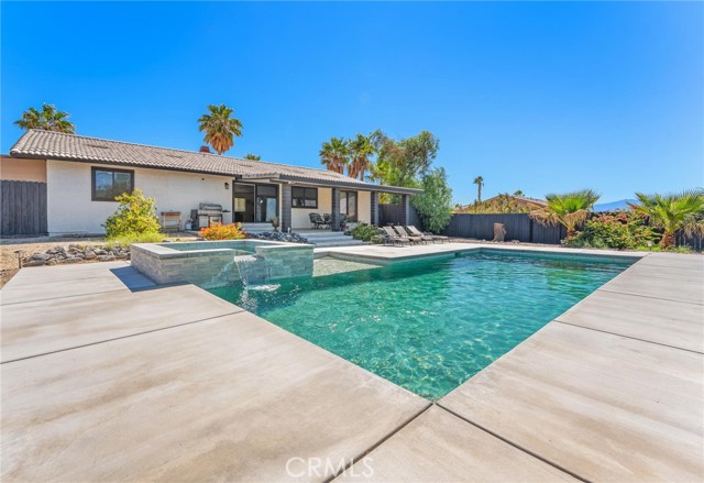 Gorgeous upgraded pool home in Historic B-Bar-H! Beautiful landscaping, sparkling pool, and fenced rear yard with Chuckwalla Trail access. Features remodeled kitchen, Anderson dual-pane windows, updated master suite, and cozy gas fireplace. Finished garage doubles as entertainment room with bar and pool table. Enjoy stunning San Jacinto Mountain views and sunsets from the covered patio. Offered turn-key furnished (furniture package outside escrow). Short Term Rentals are allowed—currently active Airbnb!