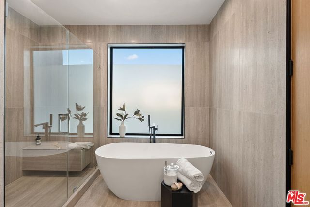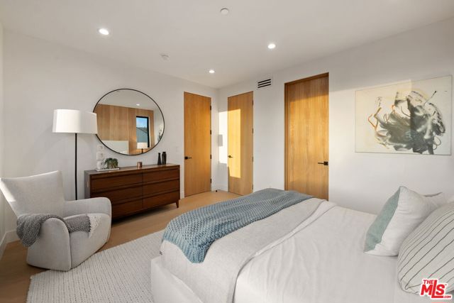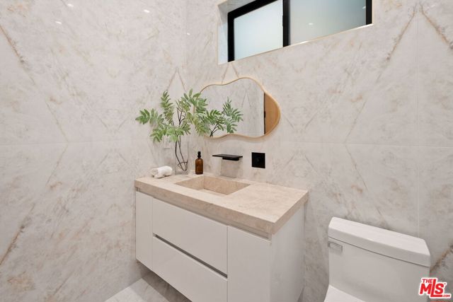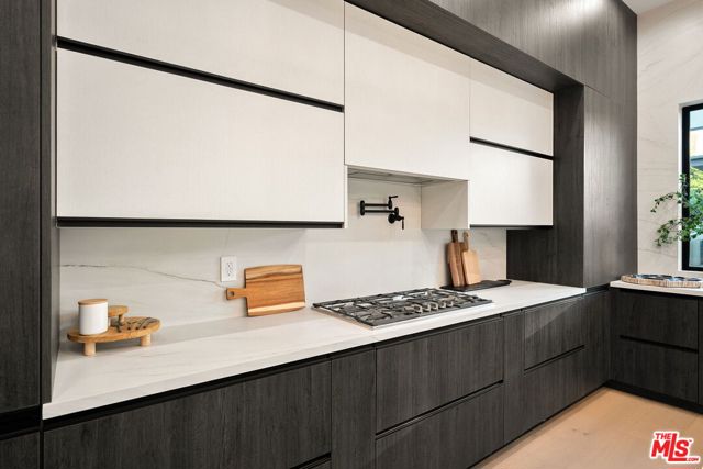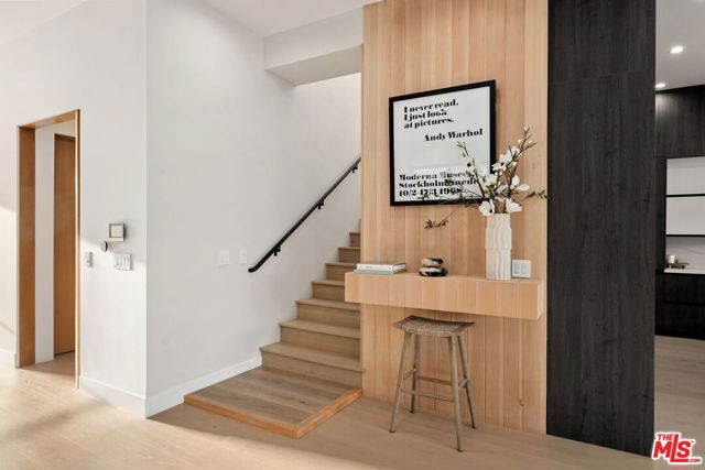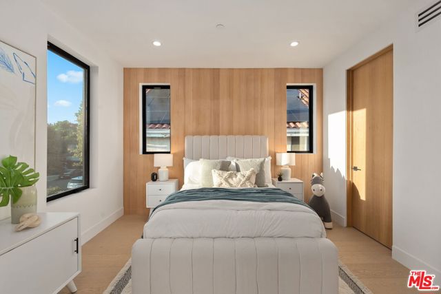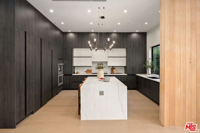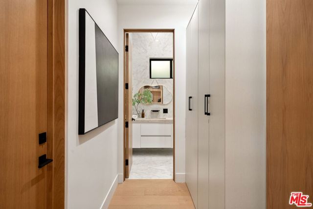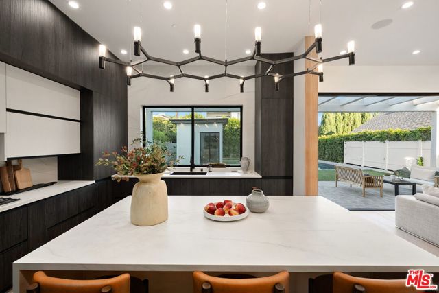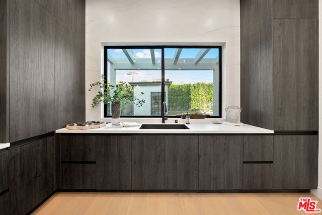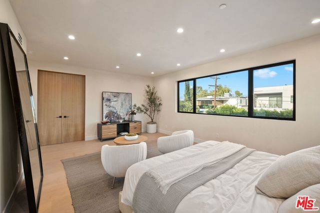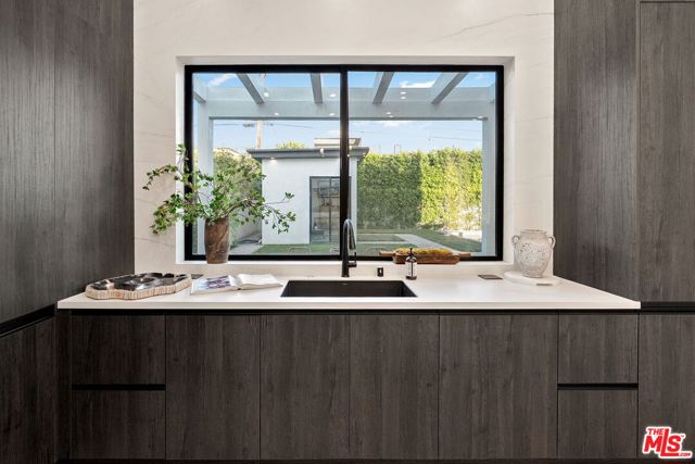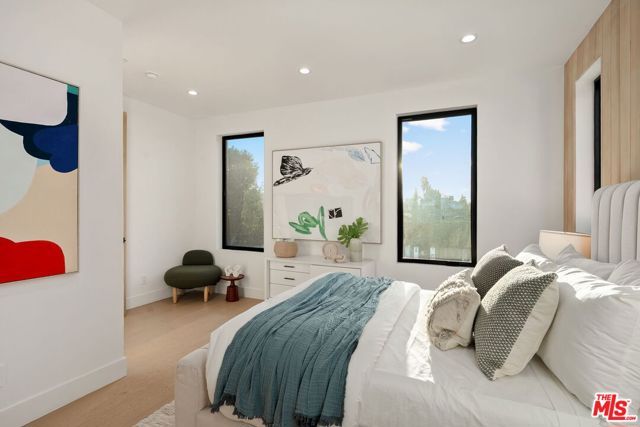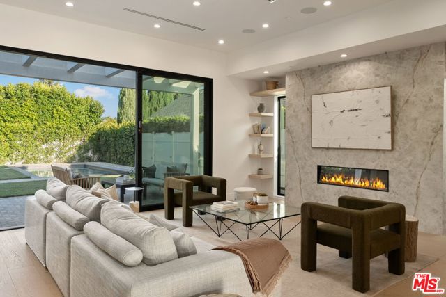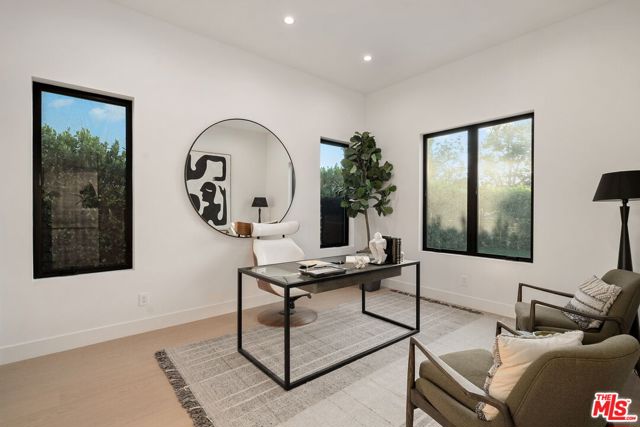Newly constructed in 2024 this gated home sits behind hedges in the coveted and convenient Library Square area of Sherman Oaks. Fresh wide plank white oak hardwood floors look stylish and contemporary, From the impressive entrance with oversized pivot door to the smart home system that controls lighting, speakers and cameras, to the micro cement paint this contemporary home feels well built. The first floor features a custom kitchen with new Thermador appliances, wood paneling, an open floor plan with a living room fireplace and bifold glass doors that create an indoor-outdoor experience with the backyard and pool. The first floor has an office with ensuite full bath and laundry room. On the second floor are 3 spacious, light filled bedrooms, The ensuite washrooms finished with the most stylish materials currently available and to a very high standard. Double paned windows, high efficiency central heat and air conditioning, and solar panels create a comfortable and energy efficient home.A pool house with full bath is the perfect place for kids to play or to rinse off after a swim. Finally, the rooftop deck offers jow dropping views of the friendly neighborhood.