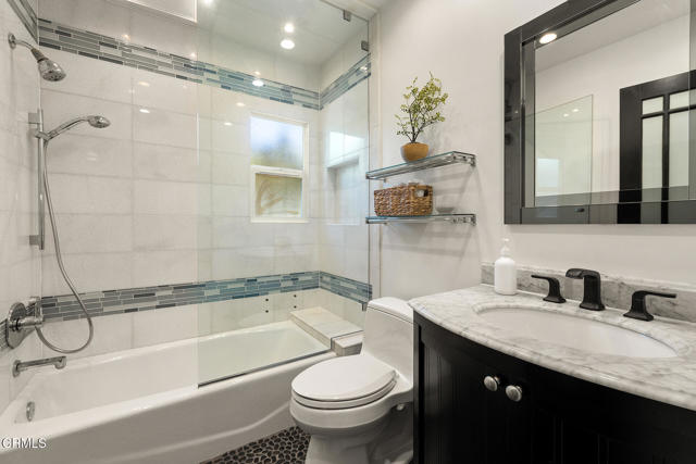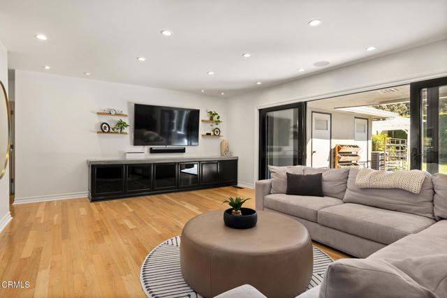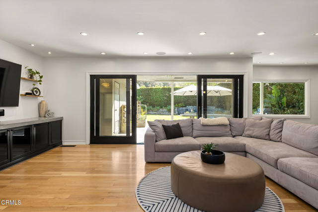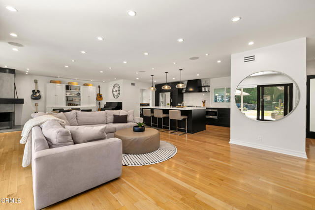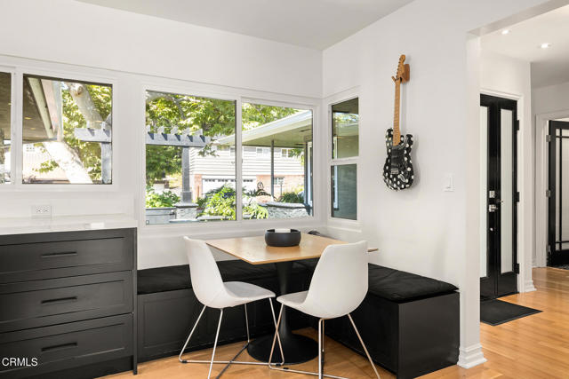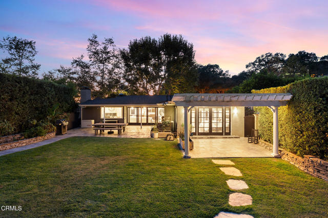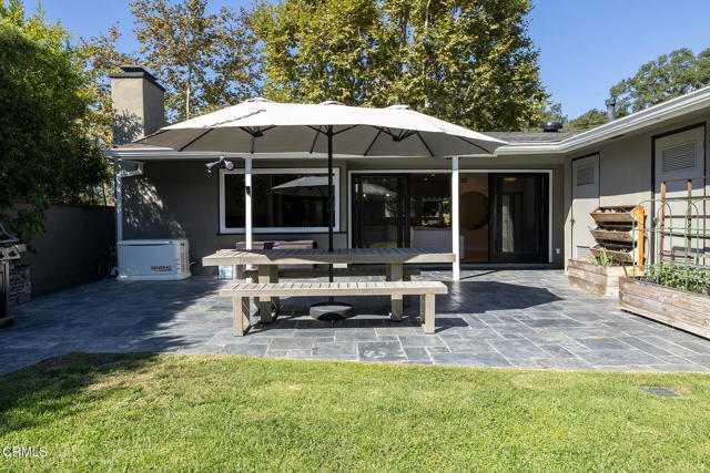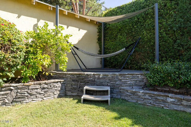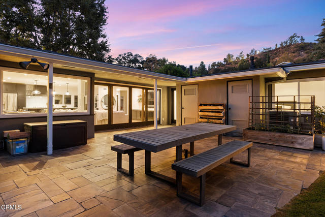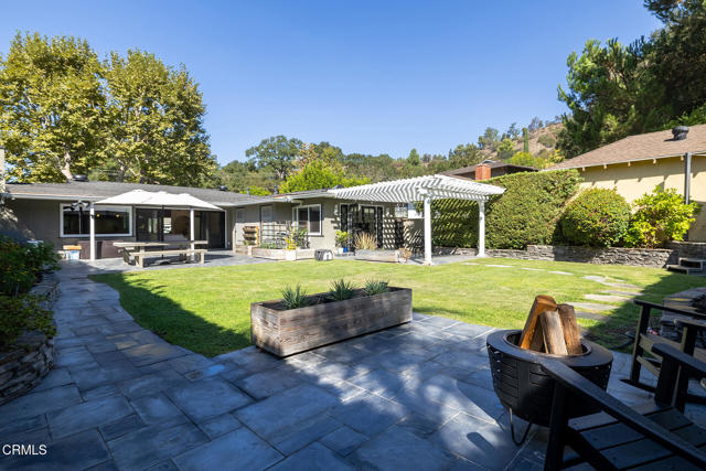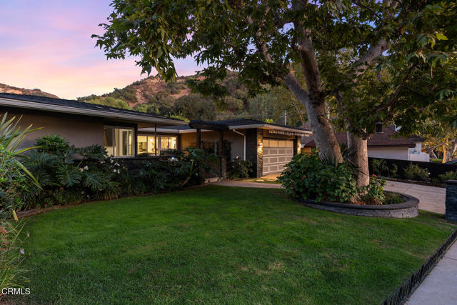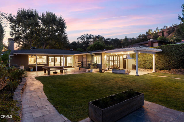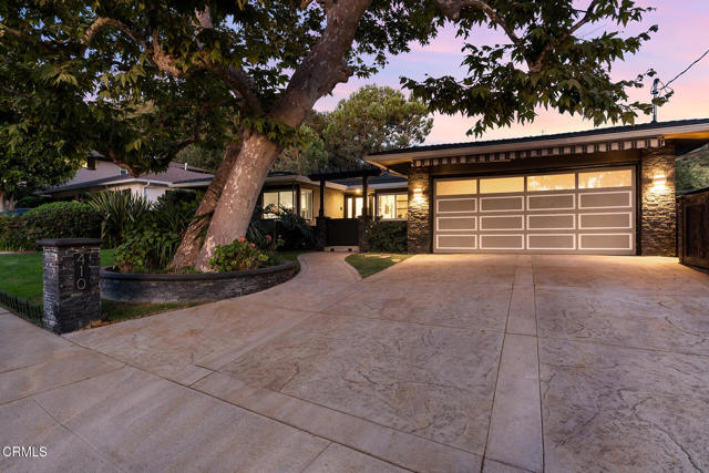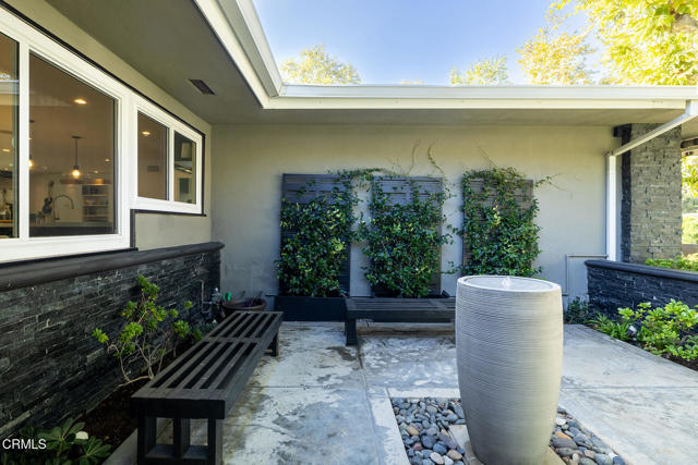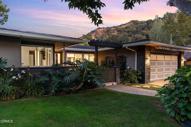 This Glenoaks Canyon Mid-Century Ranch in Northeast Glendale is the perfect retreat just minutes from the city. A walled courtyard entry welcomes you with a tranquil fountain, shaded by a majestic Sycamore tree. Glass entry doors open to an ideal layout featuring a spacious great room concept and a fully renovated chef's kitchen with an oversized island, built-in breakfast nook with bench seating and storage, and an additional beverage station. Large expanses of glass frame the surrounding landscape, bringing the outdoors in while providing a deep sense of privacy and tranquility. Hardwood floors flow through the entry and great room, connecting the kitchen, living room, and dining area accented by a corner fireplace. A large slider opens to a covered patio and beautifully landscaped backyard. A separate laundry area with additional storage and a utility sink offers direct access to the attached two-car garage. The impressive primary suite includes a luxurious spa-like bath with heated floors, a large multi-head steam shower, multiple closets, and French doors leading to a stone patio with a covered trellis. Two additional bedrooms with custom closets share a remodeled hall bath. The inviting backyard includes multiple patios, stone planters, and a grassy lawn with fruit trees, herbs, and vegetables, all completely enclosed by mature hedges providing exceptional privacy. Bonus features include a whole-house generator, newer tankless hot water heater, built-in garage storage, EV car charger, whole-house water filter, upgraded electrical panel, smart thermostat, newer windows, newer appliances, outdoor lighting, and an updated sprinkler system with landscaping enhancements. Located just three blocks from Glenoaks Park and minutes to Scholl Canyon Golf Course and Ball Field, Glenoaks Elementary, hiking trails and with easy access to the 134 and 2 freeways for convenient commutes in all directions. This is an incredible opportunity to enjoy a tastefully updated home surrounded by the beauty and exceptional neighborhood of Glenoaks Canyon.