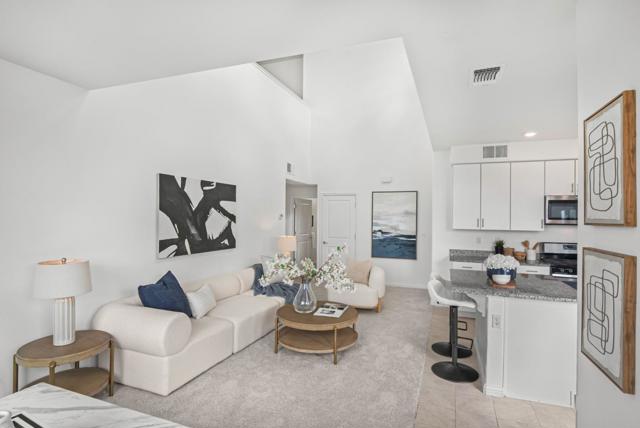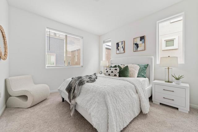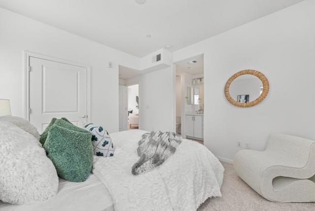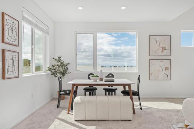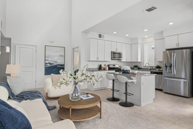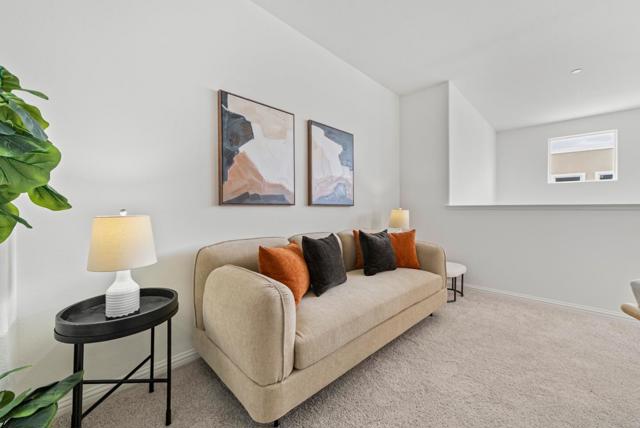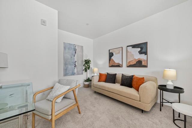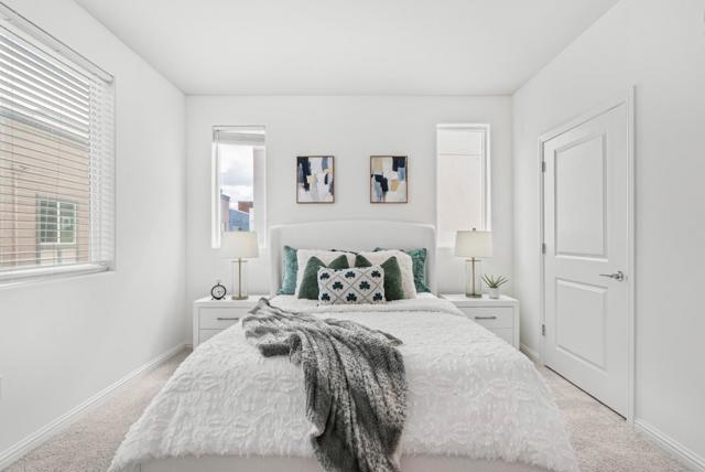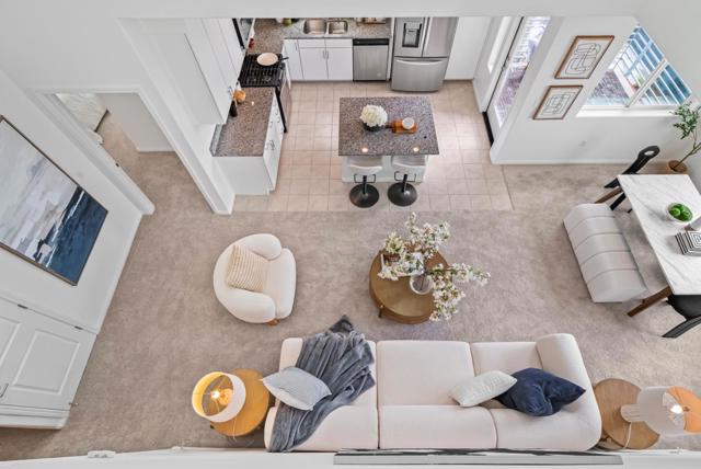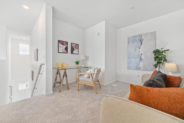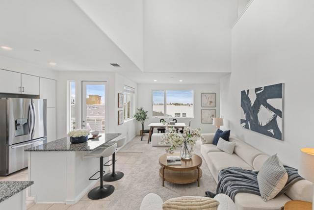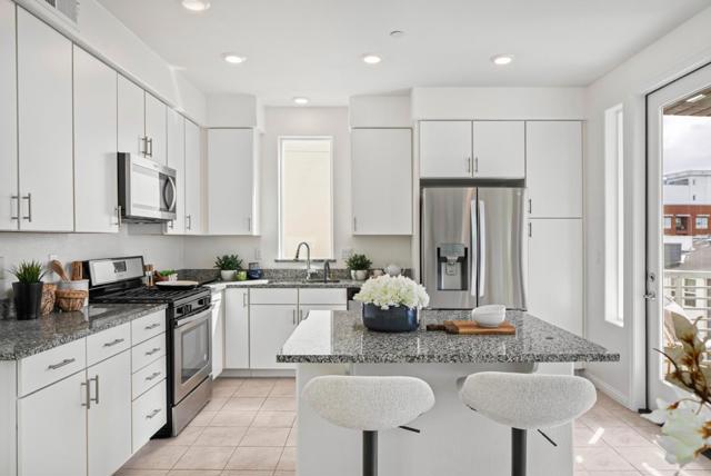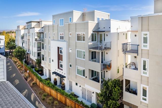 Rare-find modern top-floor loft unit in the desirable Metro community. This beautifully maintained home features high ceilings, large windows framing gorgeous mountain views, and an abundance of natural sunlight throughout. The open-concept living area flows seamlessly into a stylish gourmet kitchen with white shaker cabinets, quartz countertops, a large island, and stainless steel appliances. The spacious primary suite includes a walk-in closet and a luxurious en-suite bath with dual vanities. A flexible loft area offers the ideal space for an office, guest room, or media lounge. Additional highlights include a private balcony, in-unit laundry, central A/C, and a rare two-car garage with direct access to the elevator for convenience and security. Built in 2018, this home offers low-maintenance, modern living in a vibrant community. Enjoy proximity to BART, Trader Joes, Great Mall, Ranch 99, dining, and major tech employers, plus community amenities including tennis courts, playground, and open green spaces. This is a fantastic home you don't want to miss!