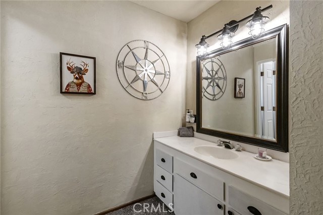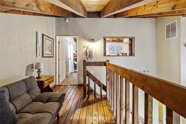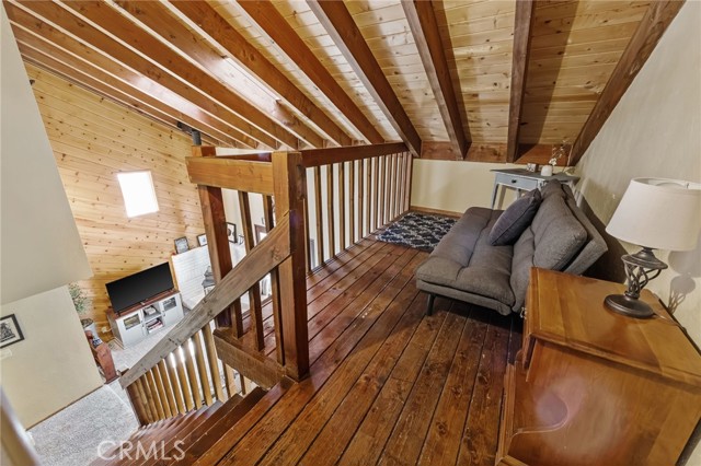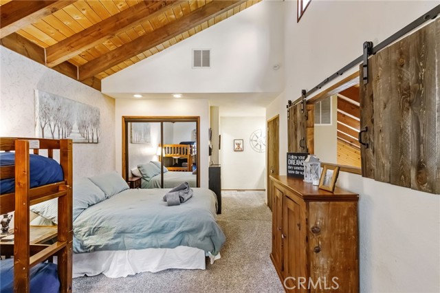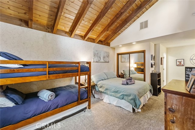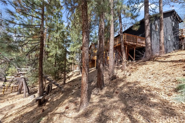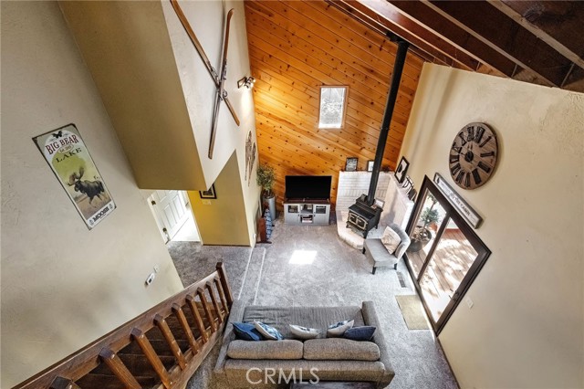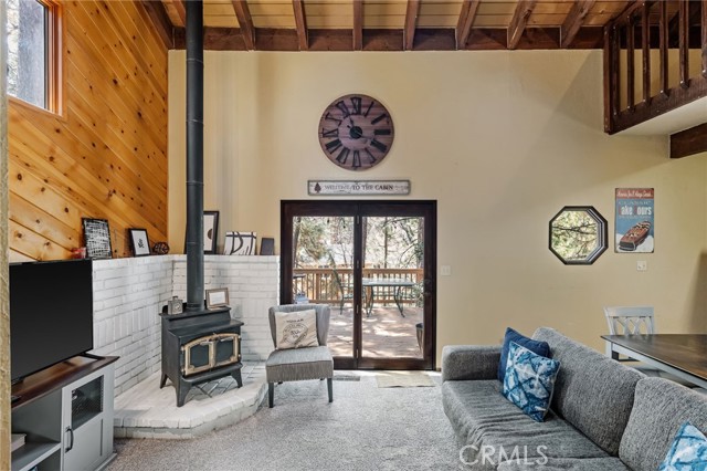 The Perch Cabin is a darling cabin located in the heart of Upper Moonridge which is a quick jaunt to Bear Mountain, the Alpine Zoo and the coveted Big Bear Golf Course! Allow this charming mountain cabin to generate some rental income! Perfect for a long-term rental or a short-term. This home offers a cozy, open concept retreat with tall, vaulted ceilings that create an open and airy feel. Designed for both relaxation and adventure, this 2 story home offers a PRIVATE GUEST bedroom downstairs as well as a loft and second bedroom upstairs that comfortably sleeps seven guests. Your lofted sleeping area overlooks the inviting living space, where soft plush carpeting adds warmth and comfort underfoot. The cabin features a well-equipped kitchen and a patio with French hinged patio doors that showcase breathtaking views of the surrounding forest. Step outside to discover a backyard playground, perfect for families, with a tree platform, a ropes course, sledding hill and plenty of space for kids to explore. Whether you're curling up with a book, headed to the slopes or bike trails, The Perch is the perfect mix of comfort and charm ready for you to make endless memories with your family! This home is available furnished too!!