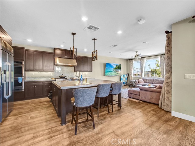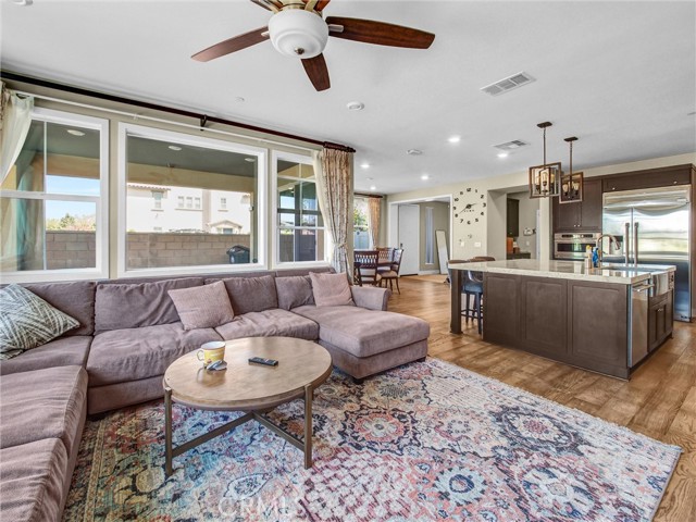 Located in the best location of the prestigious South Pointe gated community, this stunning detached home enjoys one of the most desirable views in the neighborhood. Situated within the award-winning Walnut Valley Unified School District and walking distance to South Pointe Middle School, this residence offers 3,179 sq.ft. of living space with 4 bedrooms, 4 baths, and a versatile third-floor bonus room with balcony. The open-concept first floor features soaring ceilings, a spacious living and dining area, and a California Room with covered patio design, creating seamless indoor-outdoor living. The gourmet kitchen is a chef’s dream with Monogram stainless steel appliances, granite countertops, a large center island, soft-close cabinetry, and a walk-in pantry. Upstairs, the luxurious primary suite includes a spa-like bathroom with dual vanities, soaking tub, separate shower, and a large walk-in closet. Two additional bedrooms with full bath, and a laundry room with sink complete the second floor. The third level offers a large bonus room opening to a covered balcony with beautiful views, plus a bedroom and full bath. Enjoy the meticulously landscaped backyard with a golf putting green, modern pond, and ample space for dining and entertaining. Additional features include leased solar panels and a direct-access 2-car garage. Conveniently close to FWY 57 & 60, shopping, dining, Diamond Bar Golf Course, and Mt. SAC College.