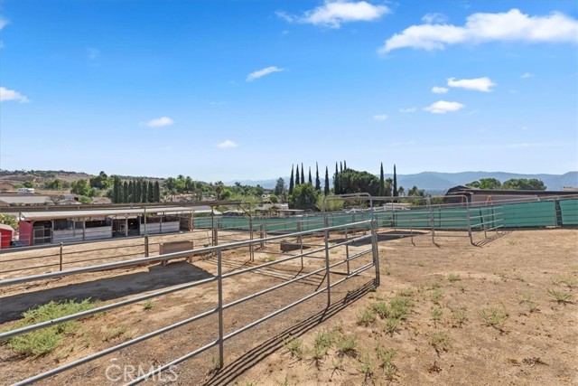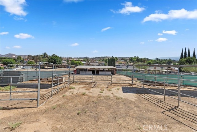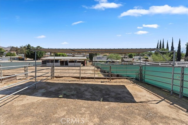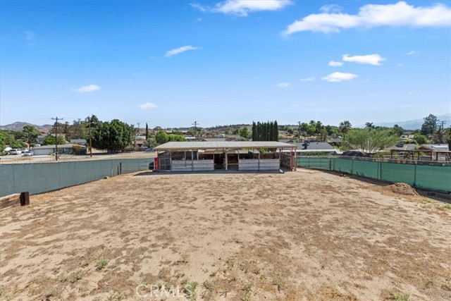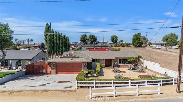 FANTASTIC HORSE PROPERTY With all the amenities and Equestrian would NEED. You will LOVE this spacious floor plan and layout which is perfect for everyone. Beautiful curb appeal with the brick siding, to the low maintenance landscaping, the fantastic iron gates to the backyard and RV PARKING .Once you walk in through the double entry doors it opens up to a large family room or you can use it for a game room/dining room. This adds extra space and secondary area to entertain and enjoy guests. The oversized family room features a beautiful rock fireplace perfect for ambiance and cool evenings. Spacious kitchen features ample cabinets for storage, including a utility sink and stainless steel appliances with an island overlooking the kitchen area. Easy to clean Corian countertops. There is even a built-in dog door for your dogs. Enjoy 4 large bedrooms large enough for KING size beds in each room. All the bedrooms have tile floors that make cleaning and maintenance a breeze. INDOOR LAUNDRY with direct access to the garage, includes beautiful cabinets for extra storage. Whole house water filter. Guest bathroom has double sinks and a lot of space, and the primary bedroom includes a separate vanity area and a walk-in shower. The primary bedroom also has 2 closets with mirrored doors. Now for the backyard you will love! There is a huge wood covered patio to sit under and enjoy your backyard. The seller just installed new vinyl fencing and low maintenance zero scape landscaping. There are multiple fruit trees for your enjoyment. RV Parking which also includes a concrete drainage system along the driveway. GOT HORSES?? This home is for you! There is an oversized shed that is 13x13 perfect for hay storage or any storage. The secondary shed has windows, drywall and an AC unit perfect for crafting, workshop, or whatever use you may have. There is a wash rack with water and lighting and also a hitching post for your horses and guests' horses. There are 4 fully covered stalls that are 12x24 that also include welded wire, misters for the hot summer days and lighting. Plenty of room to add an arena or round pen for training. The top level has 2 24x24 pipe corals with shelters for added space and more horses. There is room to add more stalls as well. The barn and sheds were just recently painted. Seller also installed newer 6ft chain link fencing around the rest of the property so all the fencing is in excellent condition (rare find in Norco) .