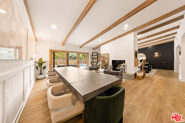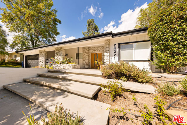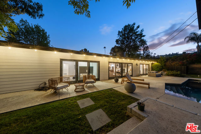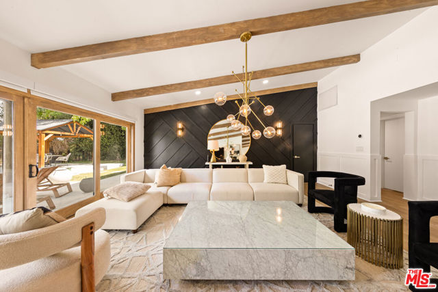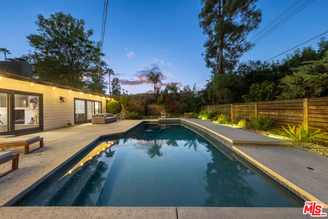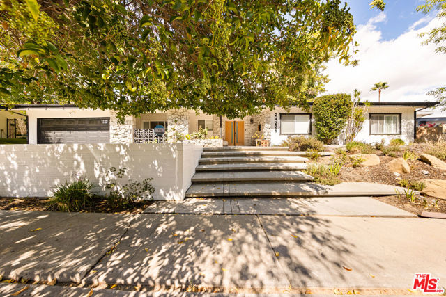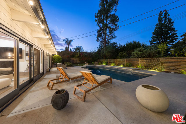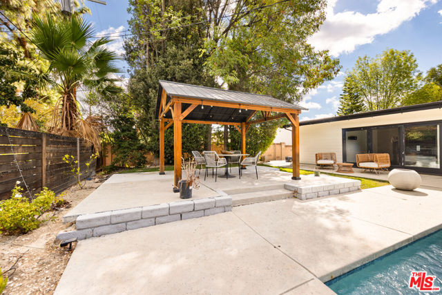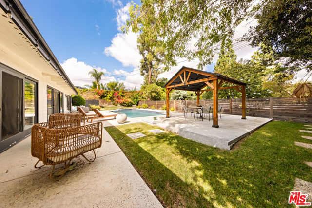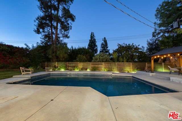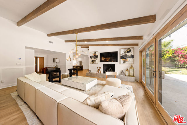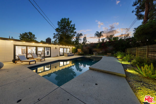 Designed by renowned architect Charles DuBois, this 1964 Mid-Century Modern masterpiece embodies timeless California living. Featuring 3 bedrooms, 2.5 baths, a two-car garage, and 2,401 sq. ft. of refined interiors on a 10,898 sq. ft. lot, the home showcases DuBois's signature open-beam ceilings, rich wood floors, and a wraparound dual fireplace at its center. Enhanced in 2022, it seamlessly blends architectural heritage with modern luxury. The flowing layout connects a grand living area, formal dining room, and chef's kitchen with a spacious island. French doors open to a private, resort-style backyard oasis with a pool, gazebo, and sport court, surrounded by lush landscaping. Perfect for both grand entertaining and quiet retreat. Located within the top-rated Woodland Hills school district, this residence is a legacy of design, reimagined for those who value elegance, comfort, and distinction. Ready to be lived in, cherished, and called home.