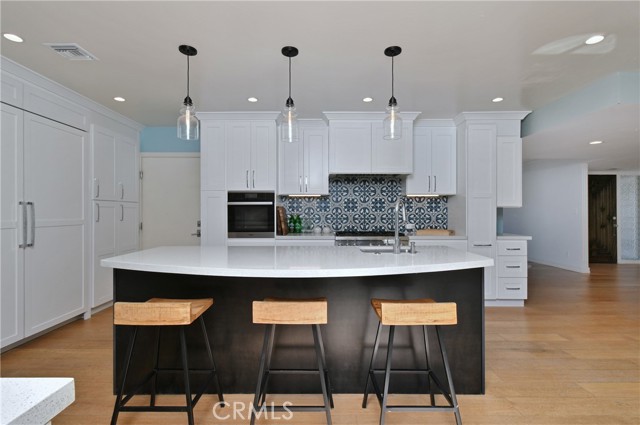 Beautiful Mid-Century Modern high in the hills of Studio City, this midcentury-inspired architectural has been remodeled with designer touches throughout. Capturing fantastic views of Studio City and the hillsides beyond, the 5-bedroom retreat features light, bright interiors, a formal dining room and a living room with soaring cathedral ceilings and a wood-burning fireplace. The remodeled chef’s kitchen boasts a center island, built-in dining nook, Quartz counters, tile backsplash, shaker cabinets, a walk-in pantry and Thermador/Miele appliances. Sliding doors open to the entertainer’s backyard with a pool, alfresco dining area, manicured gardens and terraced patios. Bedrooms and baths include the primary suite with dual closets and a double rain shower. Features include an office, leased solar and a sound system, located in the Carpenter school district, moments from the Fryman Canyon Trails and shops and restaurants on Ventura Blvd. Home needs minor repairs and a refresh.