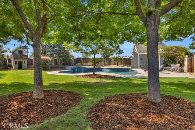 Completely renovated 3-bedroom, 3-bath residence offering thoughtful design and quality craftsmanship throughout. The home features updated flooring, lighting, and modern finishes that complement its functional layout. The outdoor area includes a pool and spa surrounded by refreshed landscaping, creating an inviting setting for daily enjoyment. Additional rooms connected to the garage provide flexible use options such as workspace, studio, or potential ADU conversion. A separate workshop supports a variety of projects and uses. A stucco-finished concrete wall defines the property perimeter, complemented by exterior lighting and an automatic entry gate. The site spans approximately 1.5 acres, combining open space with the convenience of an in-town location. Recent improvements include updated exterior lighting and landscape enhancements. The property is situated on a desirable county island near Fig Garden Village, with close access to shopping, dining, and well-rated schools.