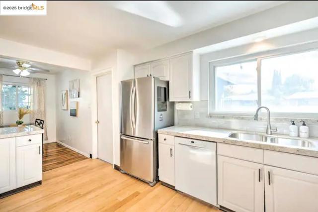 WOW! Stop the car for this beautiful single story on a court location! Updated kitchen with granite, white cabinets and stainless and white appliances. Primary bath and guest bath have also been beautifully updated. Lovely hardwood flooring in most rooms. Refrigerator, washer, dryer and hot tub all convey and personal possessions on list can also convey if buyer desires. Prior Air B & B use and can easily be set up for that use again.