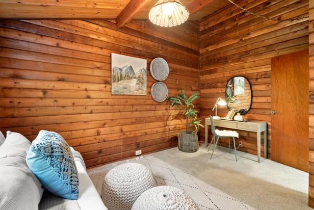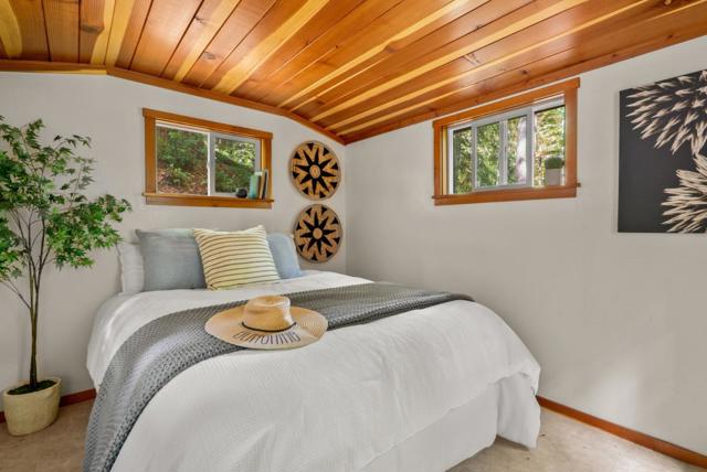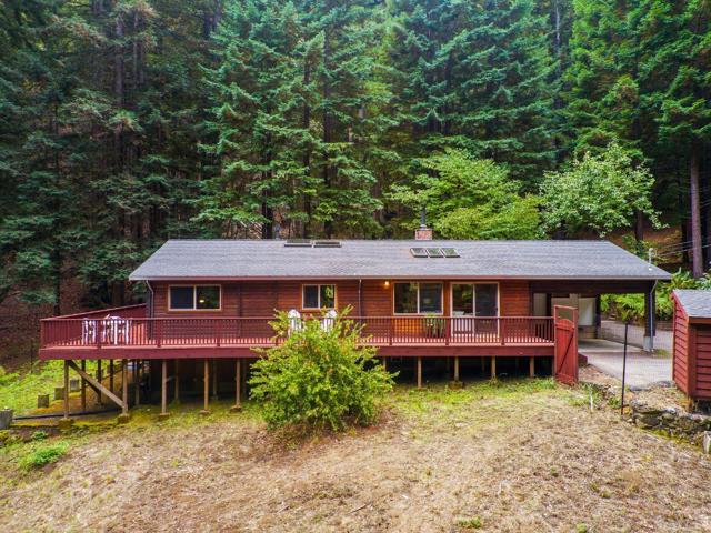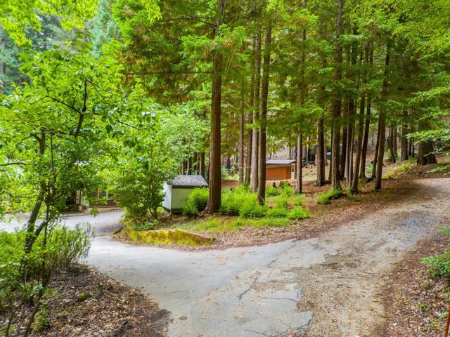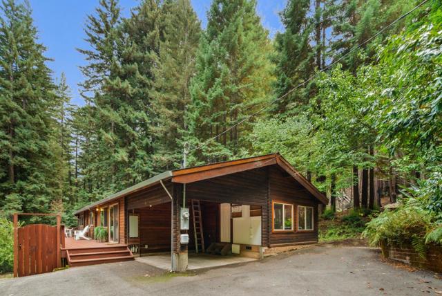 Escape the hustle and bustle of the busy Bay Area in this country retreat. Located only minutes from Highway 9 and Ben Lomond shopping, this 1,458 square foot, three bedroom, one bathroom log home exudes charm. Built-in knotty pine bookshelves create a library-like setting in the family room. A fireplace in the living room as well as forced air will keep you cozy on winter nights. Multiple skylights throughout the home create an abundance of natural light, and there are views of greenery from every window. There is a huge pantry in the separate laundry room so that you can stock up. A wide front porch overlooks a fully fenced and sun-drenched expansive flatter lawn area, perfect for creating a vegetable garden. Several venerable apple trees provide both ambiance and edible fruit. Carport and several sheds for extra storage. Situated on 30+ private acres, with a spring for water and a passing septic system, this home would be a wonderful year-round dwelling and provide a private escape during the hot summer months. This retreat is the place to create wonderful memories!