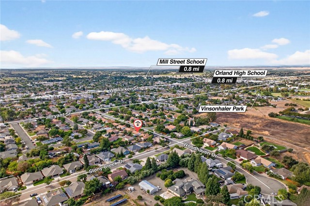 Welcome to a home that brings together comfort, space, and location. This 3-bedroom, 2-bathroom residence offers 1,504 square feet of well-designed living space with an open-concept layout and tall ceilings that make every room feel light and welcoming. A Spanish tile roof adds both style and lasting durability, while the attached two-car garage provides convenient parking and storage. The primary bedroom features its own private bathroom, offering a retreat-like experience. Two additional bedrooms provide options for guests, a home office, or hobbies—whatever suits your lifestyle. Step outside to a generously sized backyard, ideal for relaxing, gardening, or weekend barbecues if you’re feeling grill-inspired. Positioned in a desirable Orland neighborhood, you're close to parks like Lollipop Land, schools including Orland High, and everyday conveniences such as grocery stores and restaurants like The Hive Kitchen & Bar. With easy access to commuter routes, this home complements daily life with simplicity and charm.