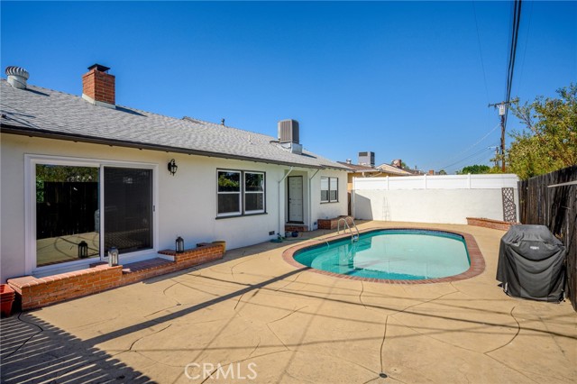 Step onto this delightful property with mature fruit trees, towering hedges, and a private gate to discover a charming home in the heart of desirable Valley Glen. This inviting residence offers three spacious bedrooms and two bathrooms, with beautifully restored hardwood floors throughout. Featuring a cozy fireplace, the expansive living room seamlessly flows to a formal dining room with a vaulted ceiling. Tile floors and countertops highlight this generously sized kitchen with a separate laundry room. Newer double-paned windows with UV protection throughout save energy while helping keep the home a comfortable temperature. The bedrooms are privately situated on one side of the home, ensuring a peaceful retreat. The primary bedroom includes a secure door that opens directly to the backyard, providing both easy access and added safety. Outside, the low-maintenance backyard boasts a sparkling pool, ideal for relaxation and entertainment, while the front yard features drought-tolerant landscaping and an ample driveway. Situated in a great neighborhood, this central location is close to public transportation, restaurants, and shopping, a perfect blend of comfort and convenience. A must-see!