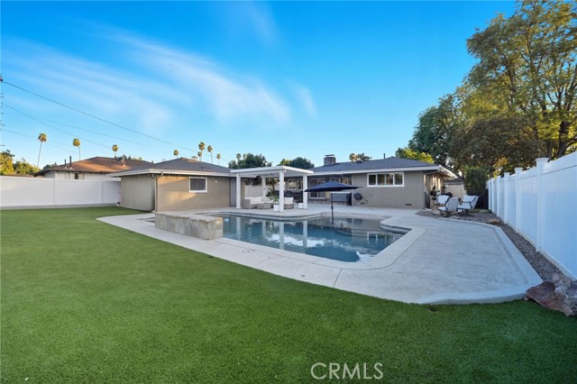 |WOOD STREETS| This beautifully remodeled 3-bedroom, 2-bath mid-century ranch is located on a tree-lined street in Riverside’s highly desirable Wood Streets neighborhood. Offering just under 1,500 sqft of living space on a large 9,147 sqft lot, the home has been extensively updated with nearly $300,000 in improvements—including a new 50-year roof, rain gutters, upgraded electrical panel, PEX plumbing, new sewer line, driveway, pool, patio cover, HVAC, insulation (attic and exterior walls), waterproof flooring, plantation shutters and windows, and fresh paint inside and out. The reimagined open-concept layout includes a fully redesigned kitchen, dining room, and bathrooms, while the spacious primary suite features direct access to a private above-ground spa under the covered patio. The backyard is an entertainer’s dream with a beach-entry pool, tranquil water feature, low-maintenance turf, and a removable safety pool fence. A detached garage offers potential for ADU conversion, and there’s room for RV parking as well. Vinyl fencing in the back and wrought iron fencing in the front add privacy and secure areas for the kids and pets. Located just minutes from Riverside City College, the historic Mission Inn Resort & Spa, and vibrant downtown Riverside, this move-in-ready gem sits in a festive, family-friendly neighborhood known for 4th of July fireworks show and Halloween celebrations. Literally, nothing left to do—just move in and enjoy your new lifestyle on Beechwood Place.