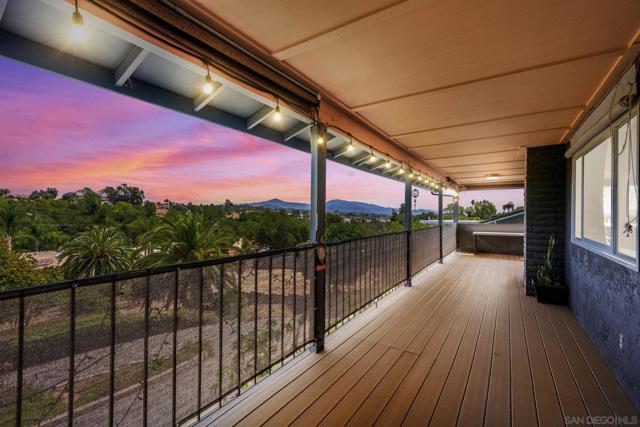 Tucked away on a private cul-de-sac in one of Escondido’s most peaceful neighborhoods, this spacious 4-bedroom, 3-bath home blends comfort, versatility, and investment potential. Set on an elevated .36-acre lot with sweeping views and no HOA, it offers privacy, charm, and convenience — just minutes from top-rated schools, Kit Carson Park, Vineyard Golf Course, Westfield North County Mall, the San Diego Safari Park, and the coast. Filled with natural light, the home has been thoughtfully renovated in 2015 and 2021, with fresh paint inside and out this year. Upgrades include paid-off solar, dual-paned windows, ceiling fans, central AC with a smart thermostat, and an ADT security system. The kitchen features updated cabinetry, granite counters, and a stylish backsplash that flows into the dining and living areas. The lower level, with its own entrance, full kitchen, bath, and fireplace, is ideal for multi-generational living or rental income. Both entries are stair-free, offering accessibility for aging parents. With ample storage, a laundry/work area, and a detached storage unit, it’s also well-suited for a work-from-home lifestyle. Outside, a gated driveway with automated entry accommodates 8+ cars and welcomes guests with a white picket fence, turf lawn, roses, palms, and low-maintenance landscaping. Expansive upper and lower decks showcase sunrise-to-sunset views, while fruit trees — including orange, guava, fig, nectarine, lemon, and papaya — add a loved, well-tended touch. The versatile lower level includes its own private entrance, full kitchen, bathroom, and a cozy log-burning fireplace — making it an ideal space for multi-generational living, rental income, or even dividing into two units. Both entry points are accessible without stairs, creating an excellent option for aging parents. With abundant storage throughout, including a dedicated laundry/tool/work area and an additional detached storage unit, the home also doubles as the perfect work-from-home setup with valuable tax benefits. Outdoors, the property truly shines. The gated driveway with automated entry accommodates 8+ cars, while the front yard welcomes guests with a classic white picket fence, quality artificial turf, palms, roses, and other low-maintenance landscaping supported by a sprinkler system. Security is enhanced with wired Night Owl cameras monitoring every entry point. Expansive upper and lower decks showcase breathtaking sunrises, sunsets, and rolling hill views. Fruit trees — including orange, guava, fig, nectarine, lemon, and papaya — alongside vibrant rose gardens make the property feel loved and well cared for.